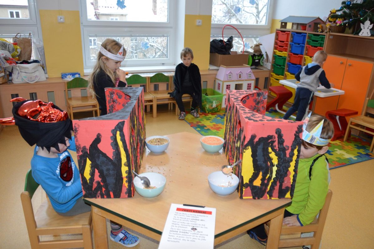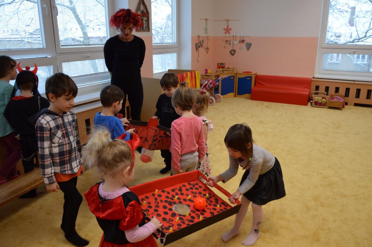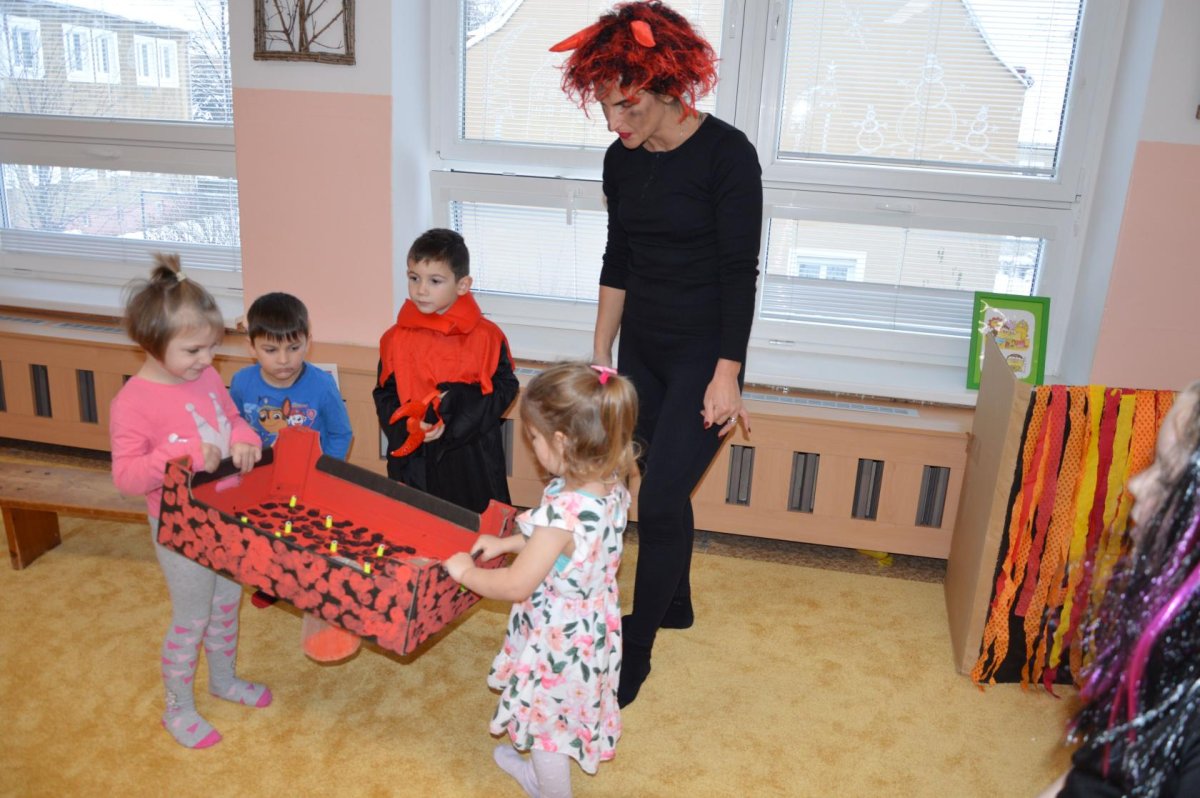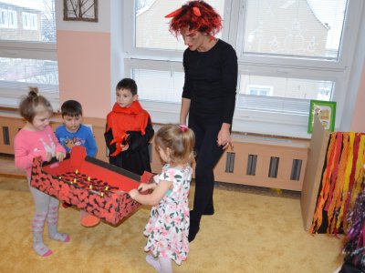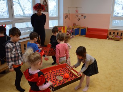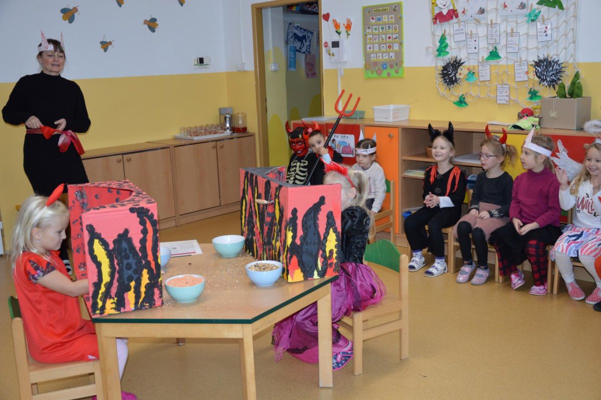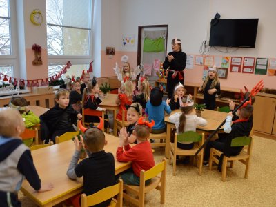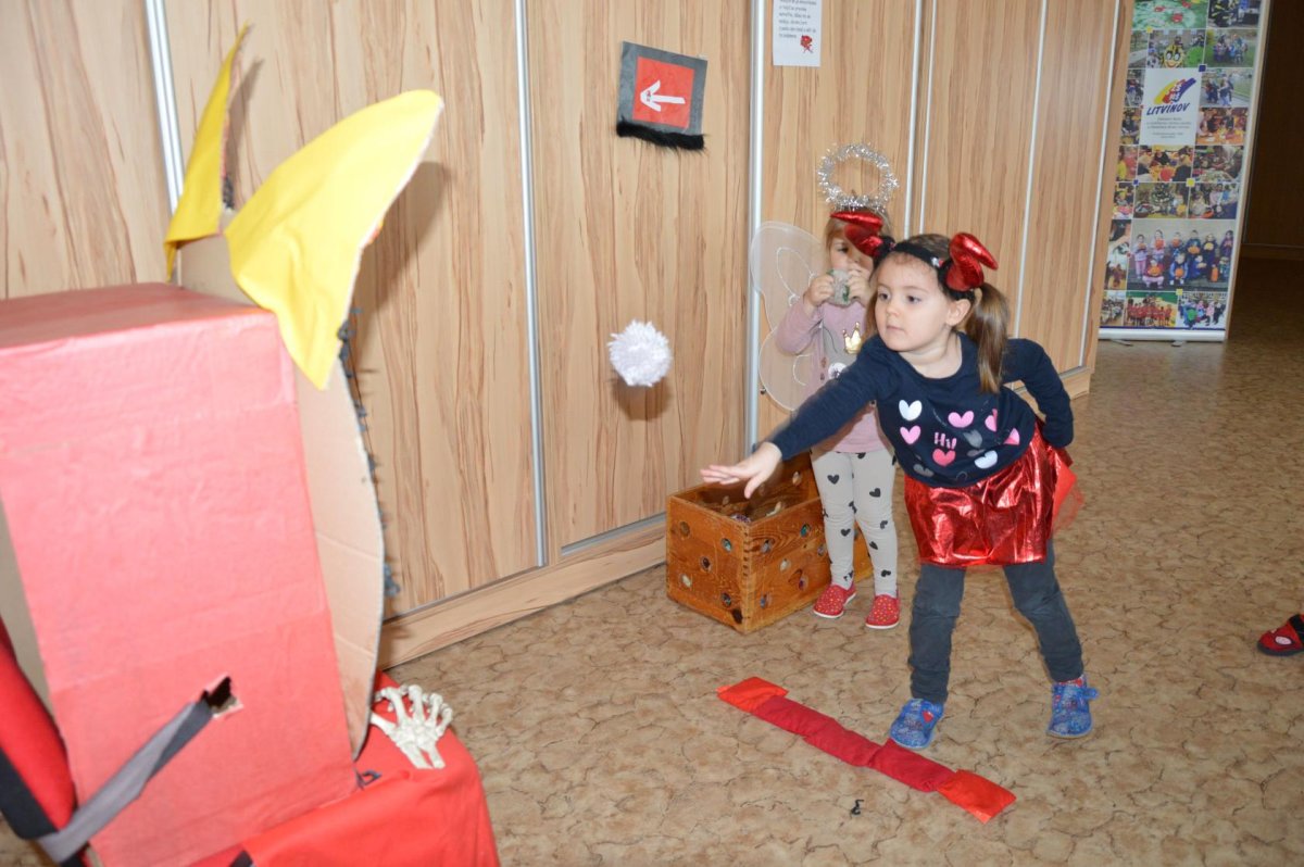 V úterý 5. prosince nás čekala Čertovská sportovní olympiáda. Od rána se ve školce scházela čertí zlobidla, a tak jsme se čertili, veselili, hráli hry, plnili úkoly a hlavně si společně užili po čertech čertovské dopoledne.