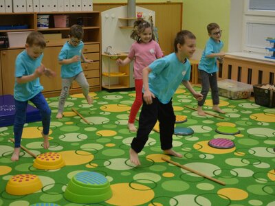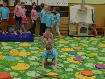 V naší mateřské škole probíhá každý týden projekt všeobecné pohybové průpravy s názvem "Děti na startu". Projekt je zaměřený na děti z předškolních tříd Žabiček a Berušek. Tréninky pod vedením certifikovaných trenérů jsou pravidelně ve čtvrtek a pátek. Nejvíc nás těší zájem a radost dětí z pohybu. Nahlédněte do fotogalerie.