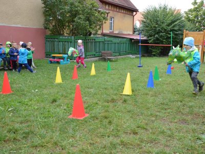 Po pilných přípravách, kdy děti donesly vyrobené draky na výzdobu zahrádky, naučily se nové básničky a písníčky, to vypuklo. Na jednotlivých stanovištích čekala děti spousta úkolů.