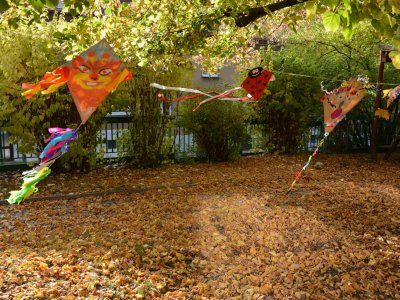 Po celé zahradě se vznášeli barevní papíroví draci, které děti vytvořily společně s rodiči – a ti se opravdu vyřádili.