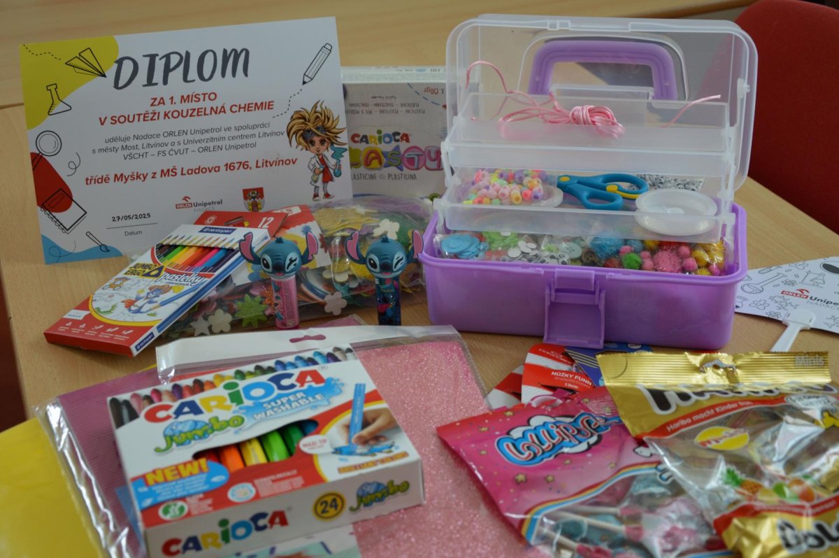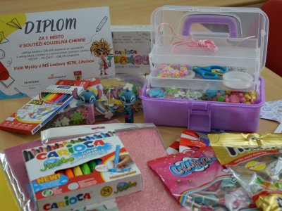 V letošním roce se dětem ze třídy Myšek podařilo v soutěži Kouzelná chemie umístit na krásném prvním místě v kategorii mateřských škol s výtvarným dílem "Páv školkový". 27.5. čekalo děti zábavné vědecké dopoledne a slavnostní předání cen. Ještě jednou gratulujeme, máme velikou radost!