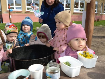 Dnes jsme zažili projektové dopoledne s názvem "Kouzlíme, kouzlíme, na lektvar se těšíme", které pro nás vyčarovaly paní učitelky z Berušek. Vydali jsme se všichni do říše kouzel, magie, čarování a zaklínadel plné pavouků a netopýrů. Vařil se kouzelný lektvar, létalo se na koštěti, pálila se čarodějnice a na závěr se tančilo na čarodějné písně. Počasí nám přálo, fotografie mluví za vše.