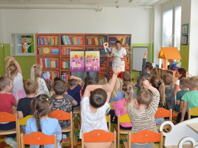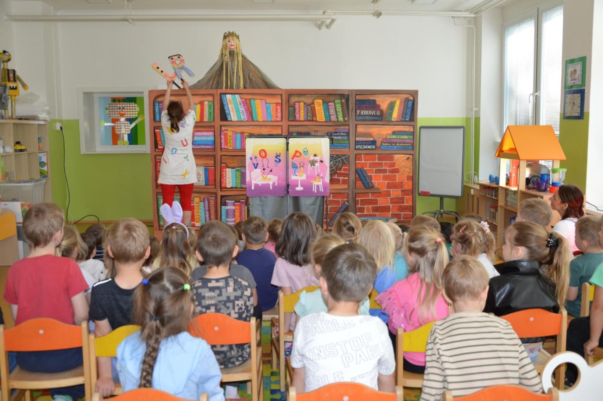 V květnu nás navštívilo Docela velké divadlo s logopedickou pohádkou "Písmenkové království". Byla to velká zábava.