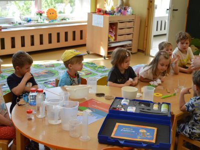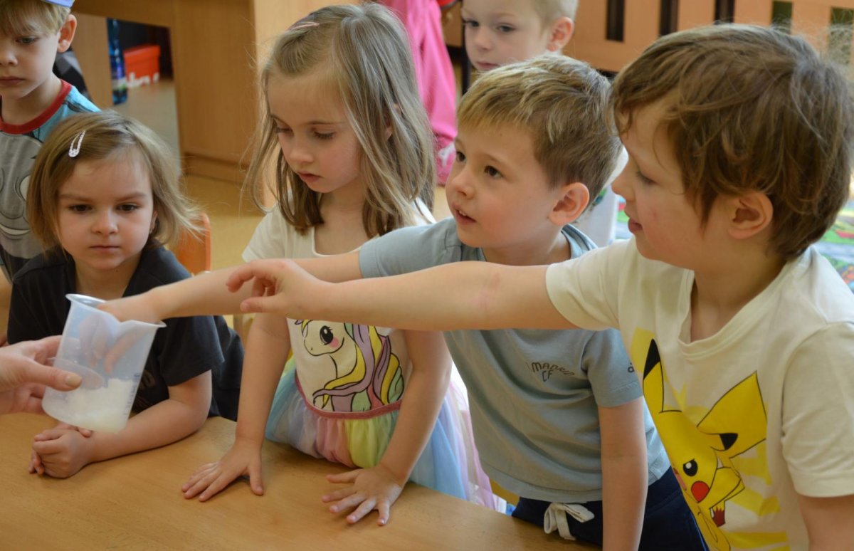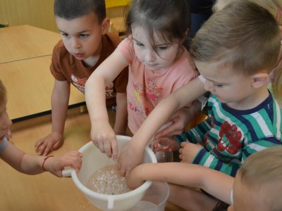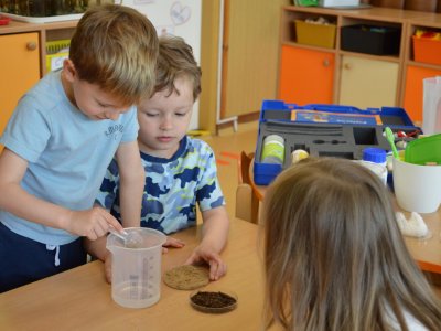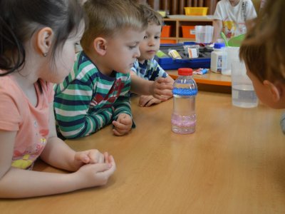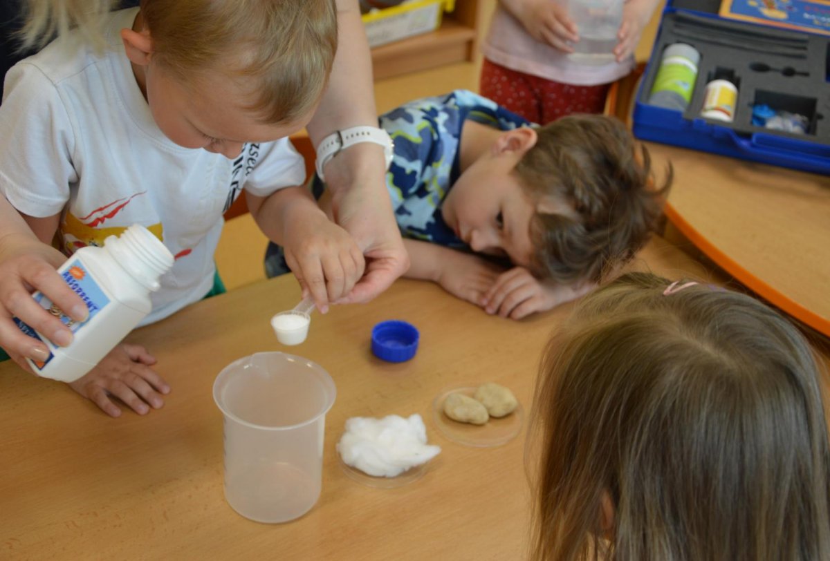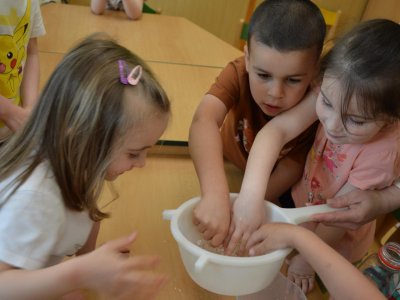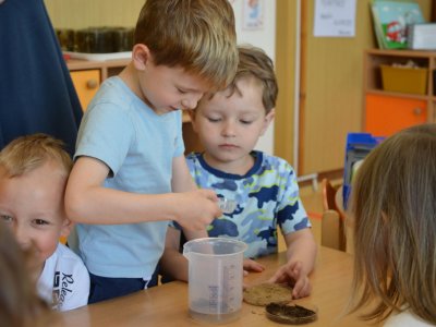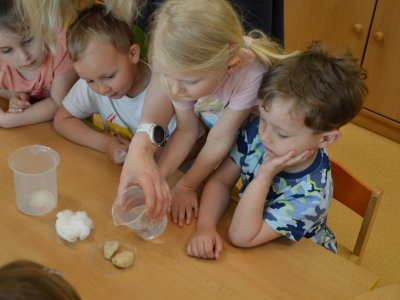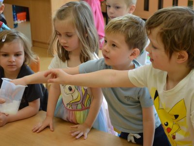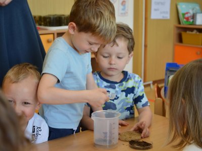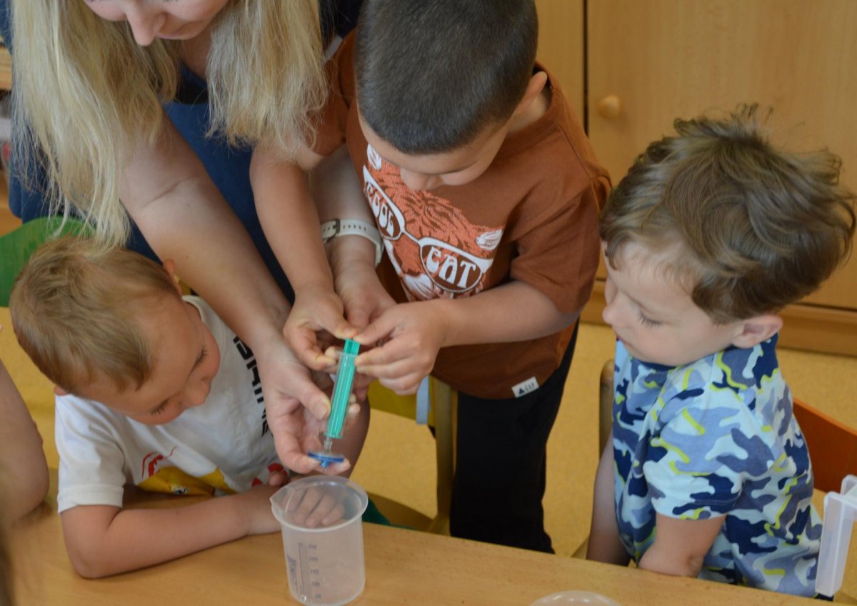 Dnes jsme se opět seznamovali s Plastíkem a jeho kouzelným kufříkem, tentokrát ve třídě Myšek. Nejdřív jsme si vysvětlili, co vlastně plasty jsou, z jakých surovin se vyrábí a kde všude mají využití. Zároveň jsme si zopakovali, kam patří plastový odpad a proč je důležité třídit. Nadšení dětí bylo obrovské, tak jsme přešli k pokusům, při prvním pokusu jsme mohli pozorovat, jaký materiál zadržuje vodu. V Plastíkově kouzelném kufříku jsme našli superabsorbent , zjistili jsme, že sice vypadá jako písek, ale je to plast a k čemu se v běžném životě používá. Při dalším pokusu jsme mohli díky mimbráně filtrovat vodu a zjistit tak rozdíl mezi sítkem a plastovou membránou. Teď už víme, jak se voda vyčistí v čističce odpadních vod. Nakonec jsme si sami plast vyrobili, a to z lepidla a kapaliny s názvem roztok boraxu. Velký úspěch však u dětí měla malá polystyrenová přilba, do které jsme připoutali uvařené vajíčko a nechali ho spadnout na zem. Názorně jsme si potom předvedli, co se vejcem stane bez přilby. Na závěr jsme si přečetli pohádku o Plastové princezně.