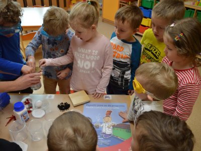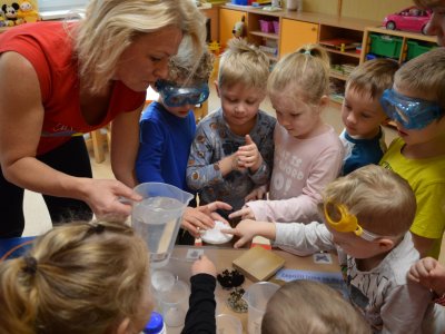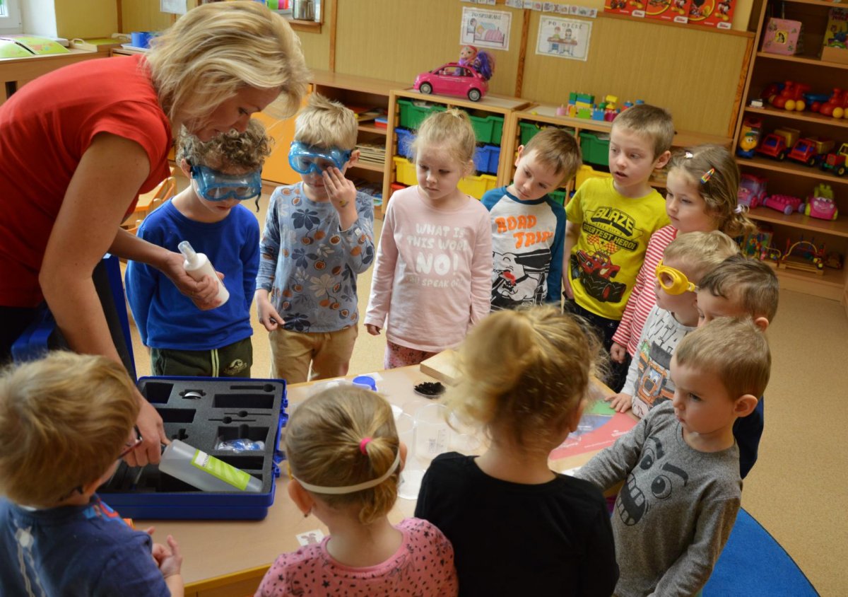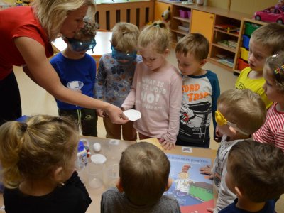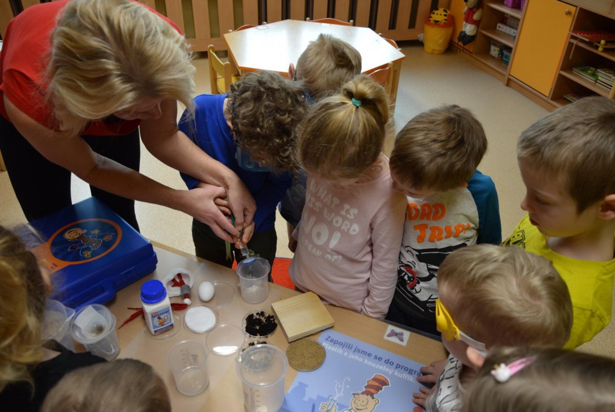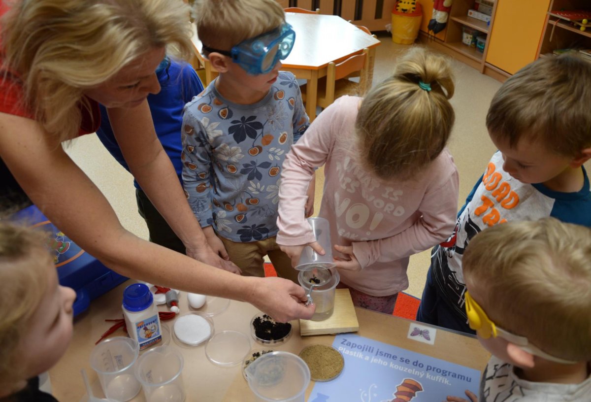 Díky Nadaci ORLEN Unipetrol, vzdělávací instituci Marstafit a Městu Litvínov se do škol dostal Plastíkův kouzelný kufřík určený k prvnímu experimentování s dětmi. V MŠ Ladova jsme se do toho pustili hned s velkým nadšením a do objevování s Plastíkem se jako první zapojila třída Kuřátek a Veverek. Děti si vyzkoušely, co se děje se superabsorbentem, když se na něj nakape voda, k čemu je filtrační papírek a jak dokázala plastová membrána vyčistit špinavou vodu. Nejvíce se dětem líbil pokus s vajíčkem, které ochránila od rozbití speciální mini helma z pěnového polystyrenu. I ti nejmenší zvládli manipulaci s odměrkou, kapátkem, stříkačkou, dokonce i přelévání vody z kádinek přes síto a těšili se na to, co se změní, nebo co nového se nám zase objeví. Už se těšíme na příště, protože to si s Plastíkem vyrobíme z roztoku boraxu a lepidla sliz. V plánu máme také vědecký projektový den ve výuce, kdy lektorka Adéla Marschallová Rumlerová, za vzdělávací instituci Marstafit zavítá k nám do mateřské školy. S pomůckou jsme se seznámili na výstavě zámku Valdštejnů v rámci projektu Místní akční plán vzdělávání II pro ORP Litvínov. Za skvělou atmosféru a prvotřídní péči na zámku chceme poděkovat vedoucí odboru sociálních věcí a školství Veronice Knoblochové, projektové manažerce Petře Zavázalové, referentkám úseku školství Jaroslavě Oplové a Petře Reifové. Oslovilo by nás i další školení pro naše pedagogy. Děkujeme všem, kteří nám pomáháte přinášet dětem stále nové podněty k jejich seberozvoji a poznávání světa kolem nás.