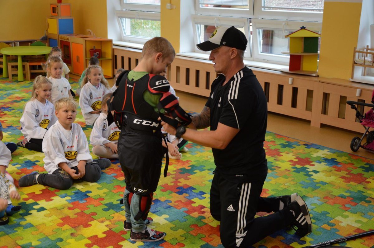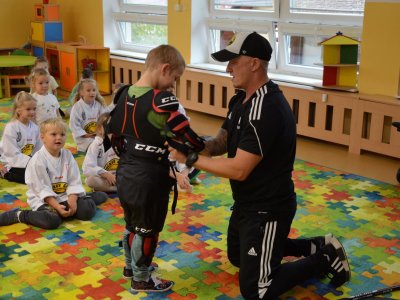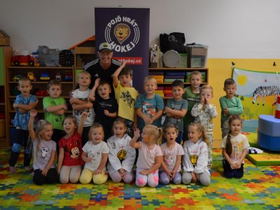 Ve čtvrtek 19.9. nás v rámci projektu "Pojď hrát hokej" navštívil hokejový trenér Mikael Pančák. Připravil pro děti zajímavou pohybovou aktivitu, ukázal hokejovou výstroj. Děti si dopoledne moc užily. Děkujeme a těšíme se na příště.