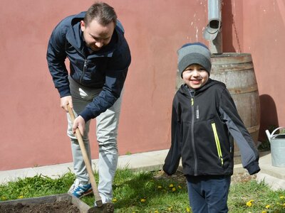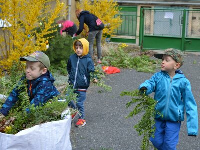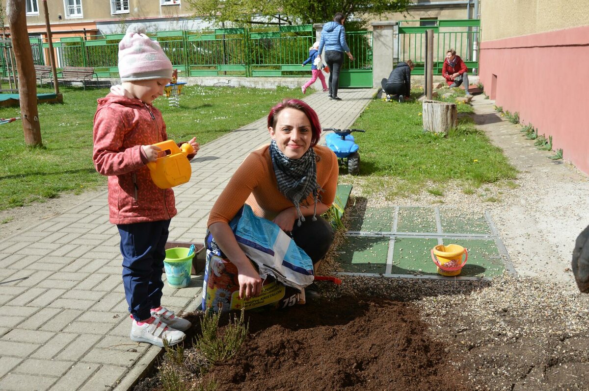 Včerejší oslavy Dne Země jsme završili projektovým odpolednem s názvem Připravujeme zahradu na jaro. Čekala nás spousta práce, nebyli jsme na to ale vůbec sami, ruku k dílu přiložili rodiče. Společně s dětmi nám šla práce rychle od ruky. Čekalo nás okopávání záhonků, sázení nových sazeniček, hrabání listí, přesto byly děti nadšené, že mohou pomáhat svým rodičům, zvláště když mohly za odměnu ochutnat dobroty, které nám připravily paní kuchařky. Moc děkujeme všem pomocníkům a těšíme se, až si společně s dětmi užijeme krásné jarní počasí a společnou zábavu venku.