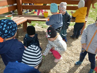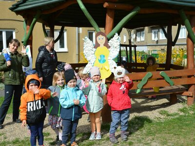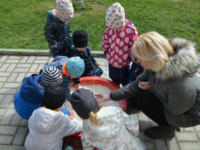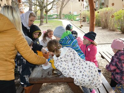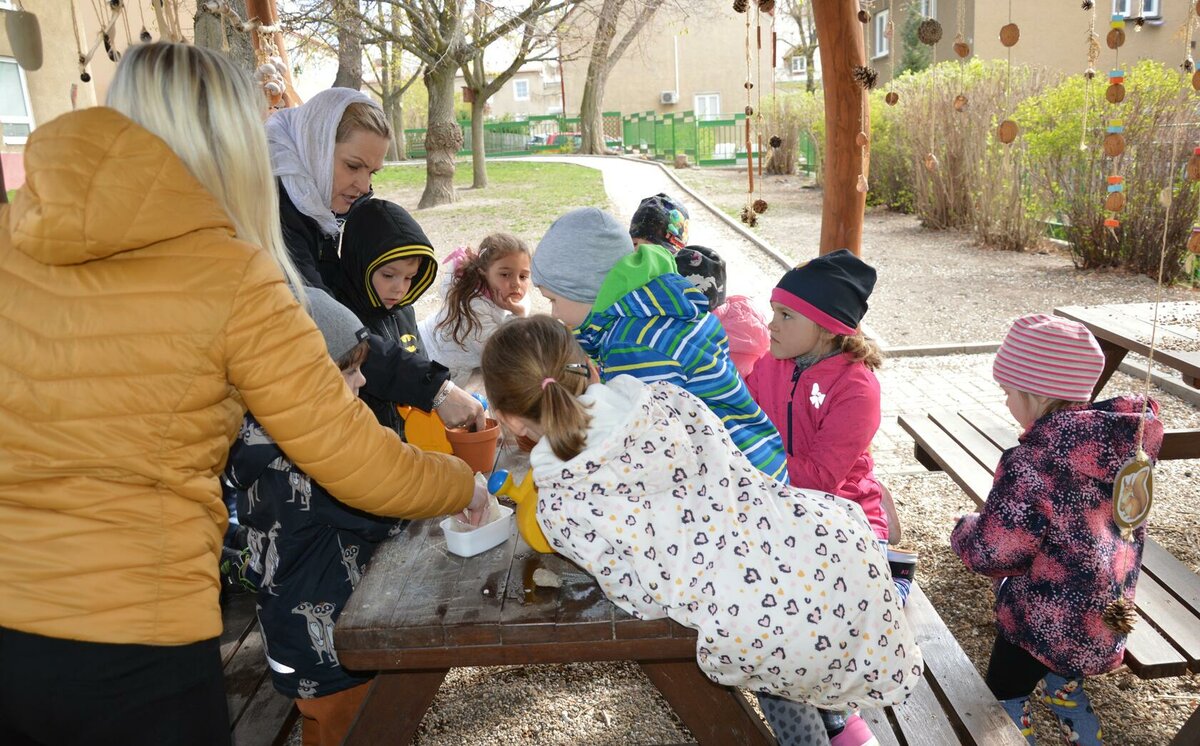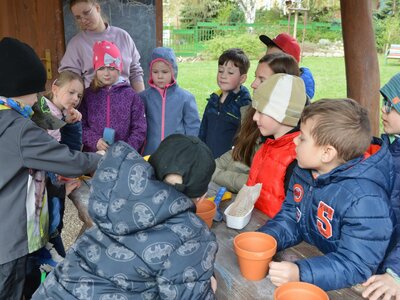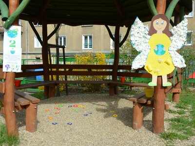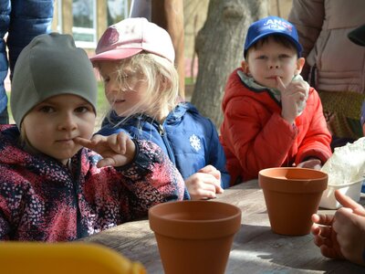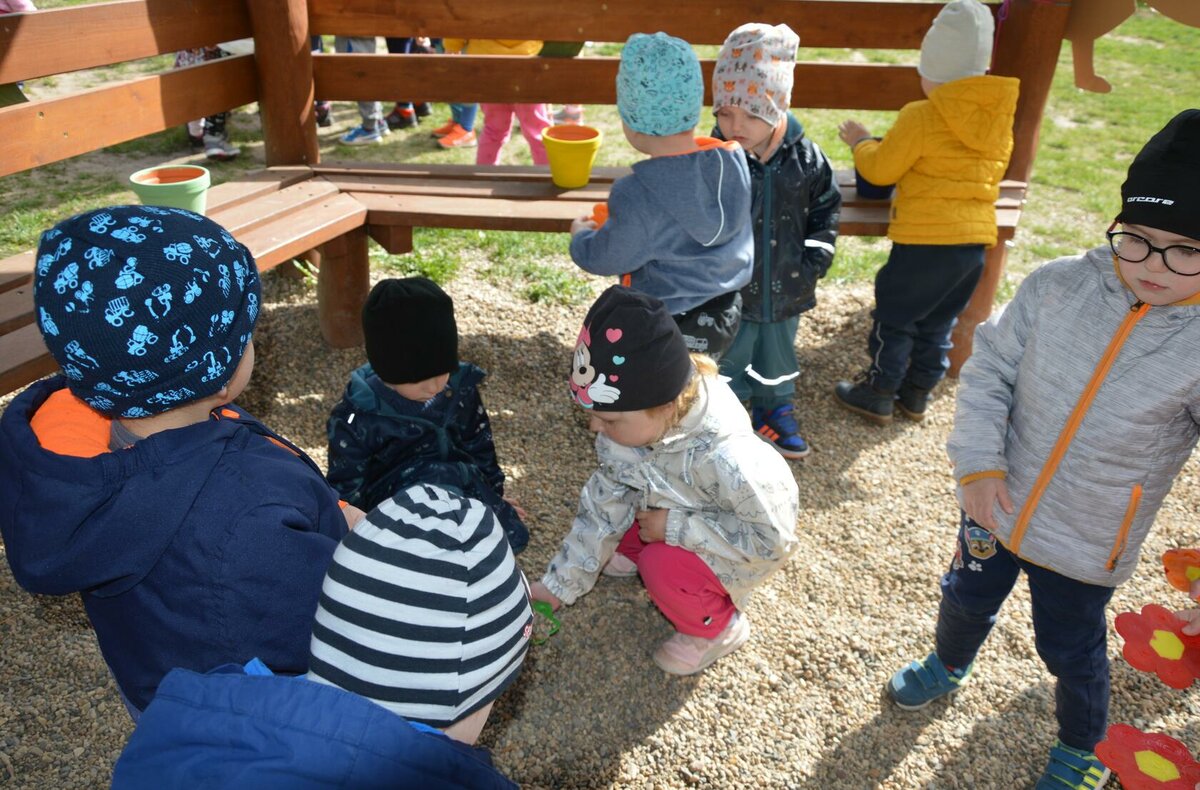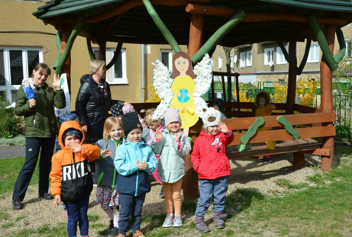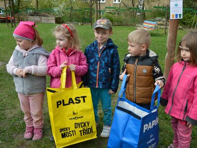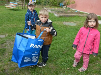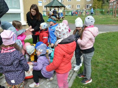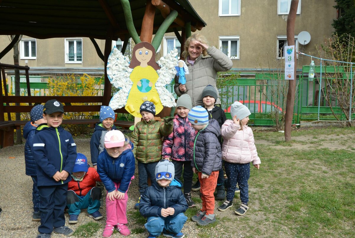Dnes jsme oslavili svátek naší Země projektovým dopolednem na zahrádce mateřské školy. Přiletěla za námi víla Třídilka a připravila pro nás dobrodružnou cestu za pokladem. Dozvěděli jsme se spoustu důležitých věcí, například, jak pečovat o rostliny, chránit přírodu a živé tvory. Zahráli jsme si na zahradníky a zasadili semínko, museli jsme správně roztřídit odpadky, které nám na zahrádce rozházel skřítek Bordelníček , také jsme prošli stezkou s drakem Plastíkem, zkrátka jsme si užili spoustu legrace. Větší děti nejvíc zaujalo sázení květin, ty menší zas třídění podle barvy a hledání semínek v písku.