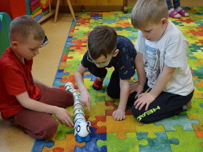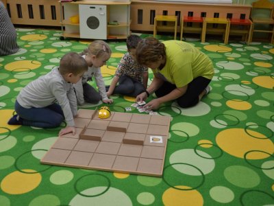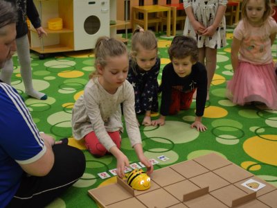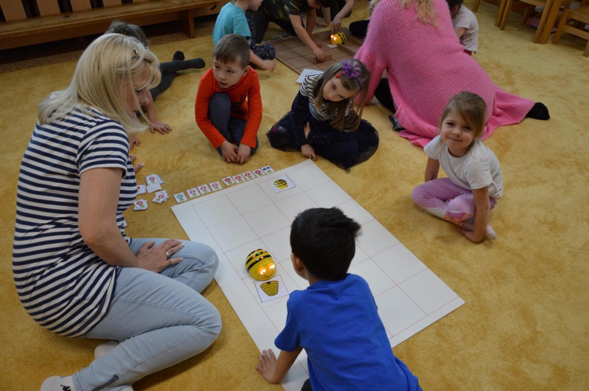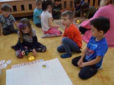 Dopoledne pro děti ze tříd Berušek, Myšek, Krtečků a Veverek bylo plné zábavných a praktických aktivit. Navštívil nás odborník z praxe Václav Mathauser a děti si pod jeho vedením mohly procvičit základy programování. Učily se ovládat robotické včelky Bee-boty, robotické myši a housenky Code a Pillar. Pracovaly samostatně i v týmu a velmi se jim to líbilo. Tímto děkujeme a těšíme se na další návštěvu.