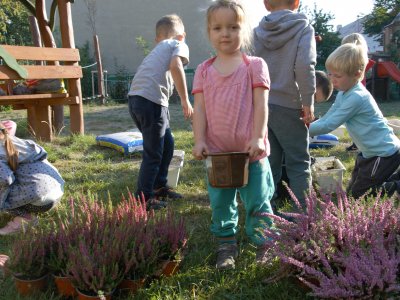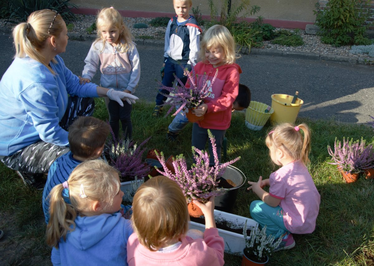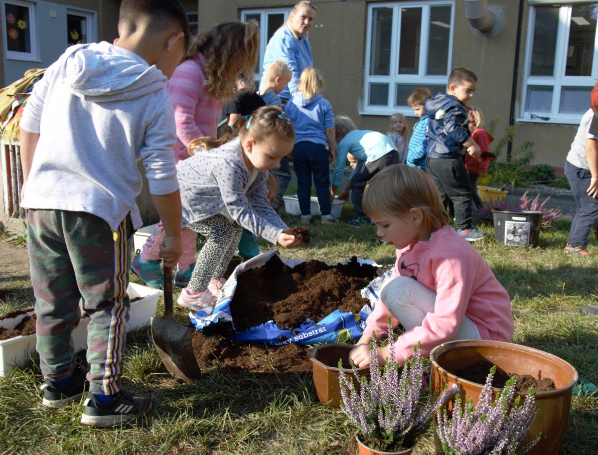 Projektová dopoledne byla zaměřená na práci na zahrádce. Děti vysázely květiny do tuhlíku a nádoby ozdobily podzimními plody. Zároveň si mohly vyzkoušet sázení cibulek jarních květin (narcisy, tulipány). Už se všichni těšíme, jak nám to na jaře krásně pokvete.