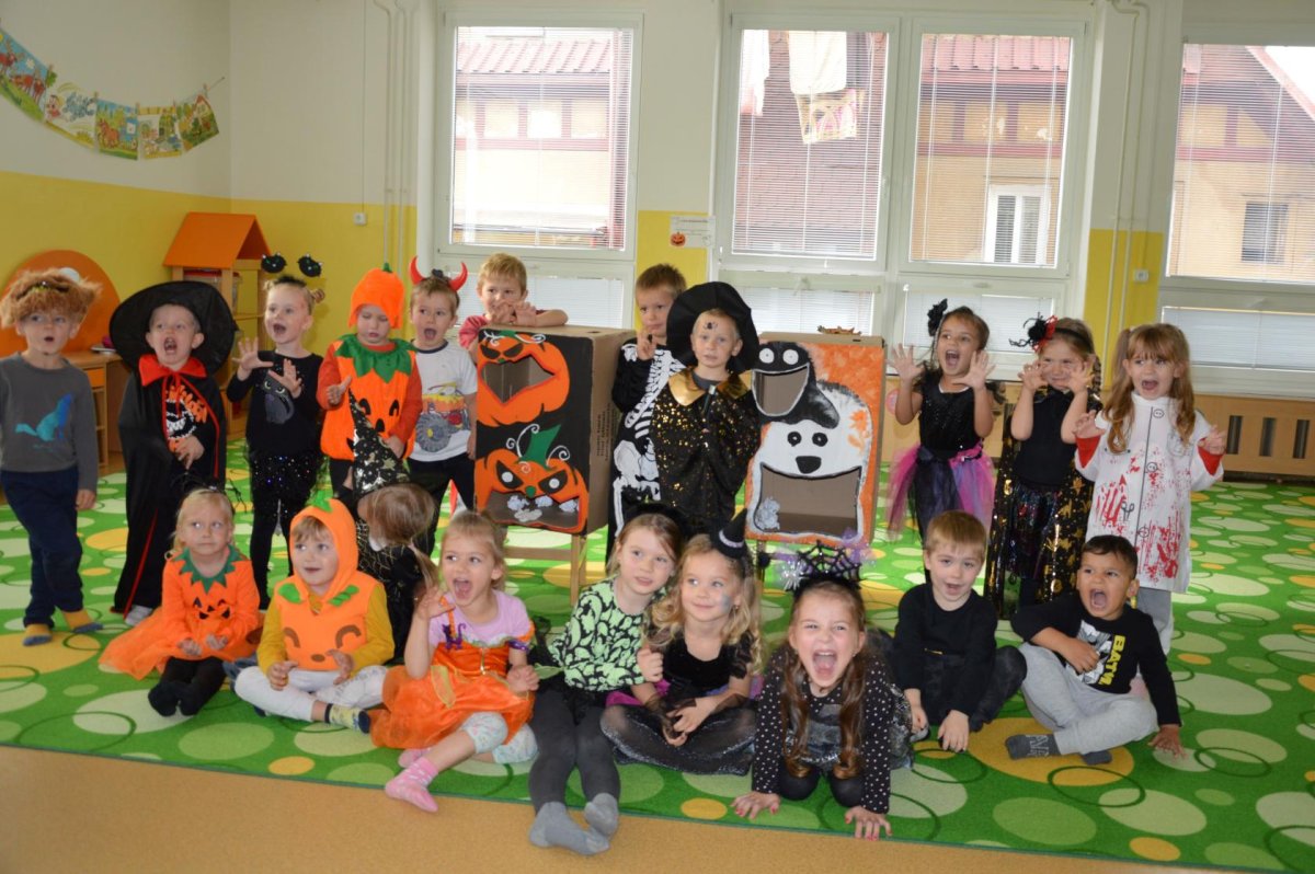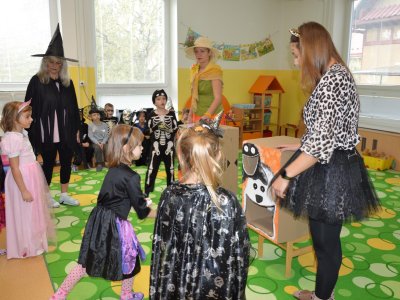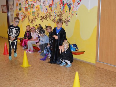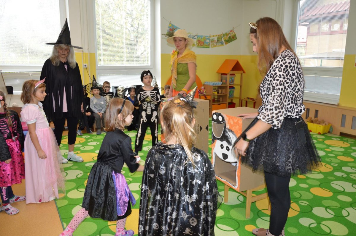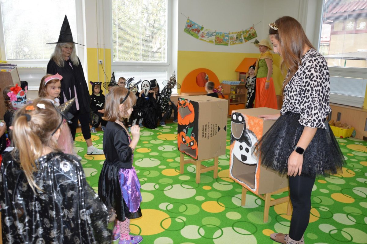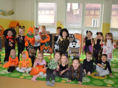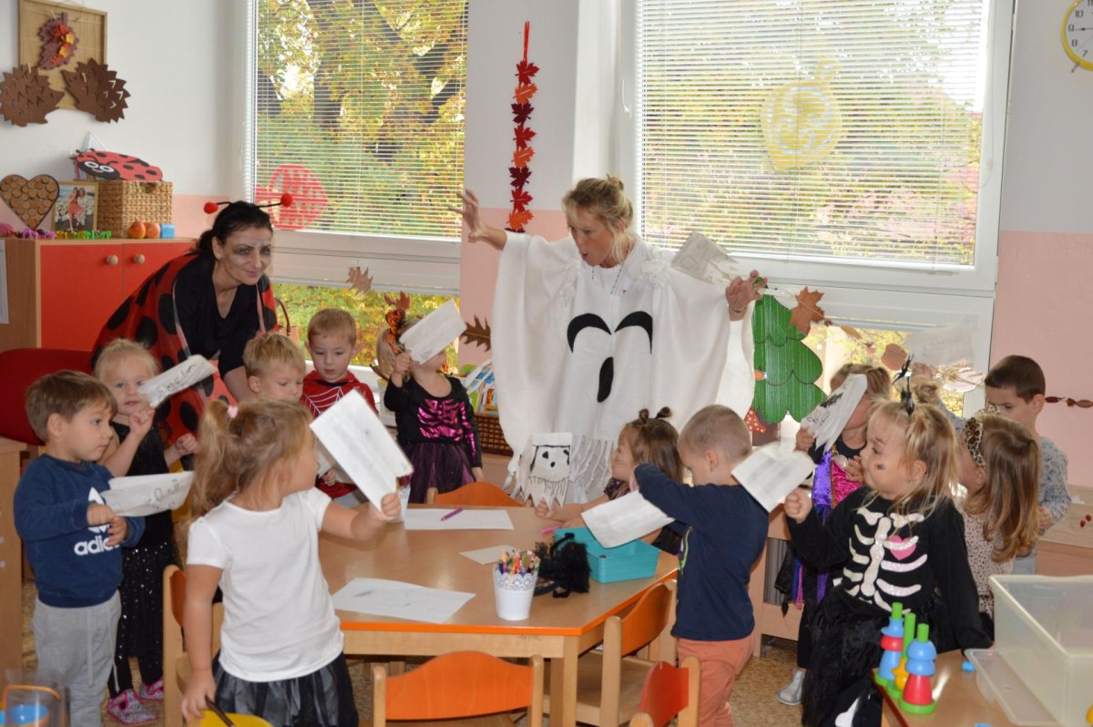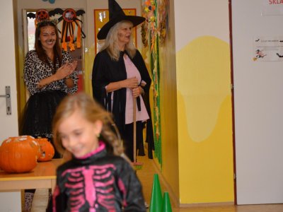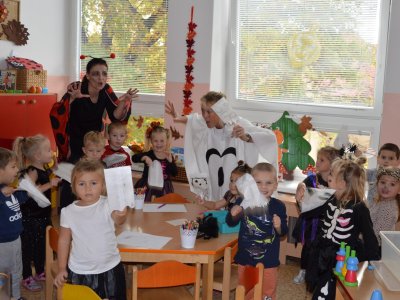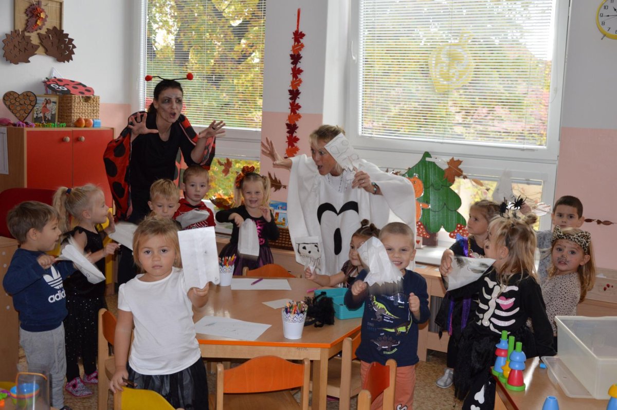 V úterý 31. října nás čekalo dopoledne s názvem „Školka strašidel“. Naše školka se změnila na strašidelnou komnatu plnou kostlivců, duchů, upírů, dýní a všelijakých dalších bytostí. Paní učitelky ze třídy Žabiček dětem připravily překvapení v podobě jednotlivých stanovišť se zábavnými úkoly. Děti se prolétly na koštěti, zkusily si hod do dýně, vyzdobily klobouk pro čarodějnici, užily si dopoledne plné kouzelných zaklínadel a her.