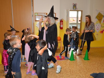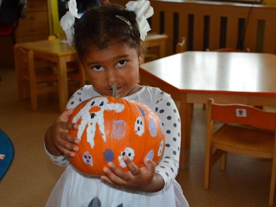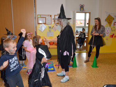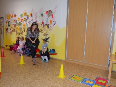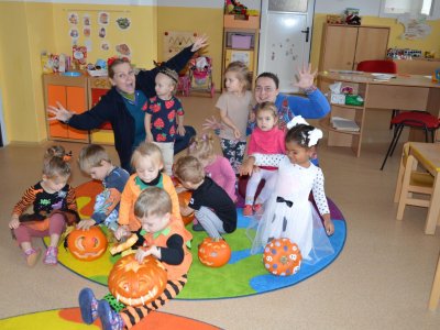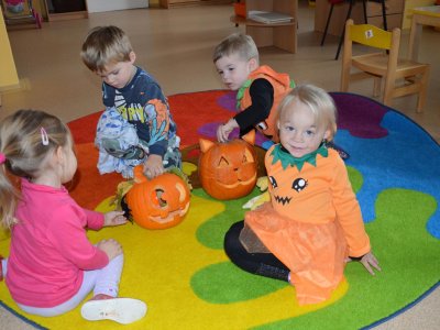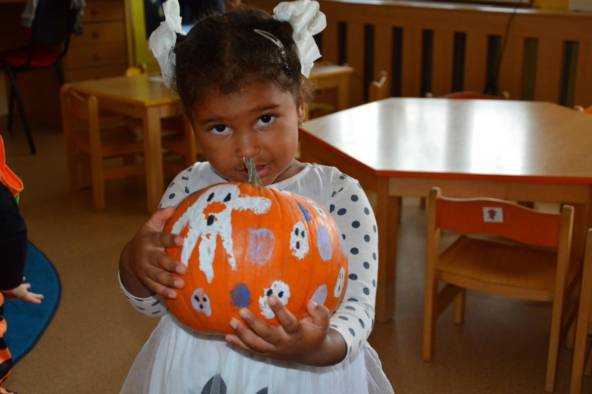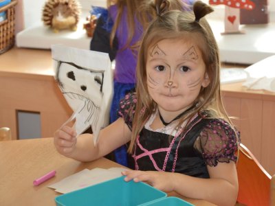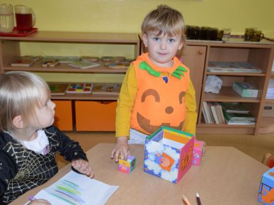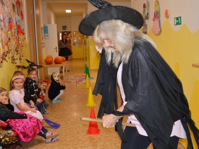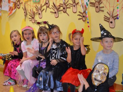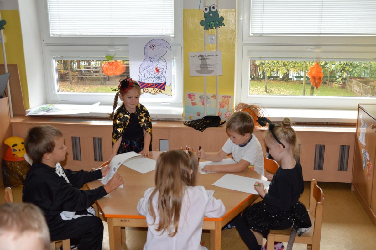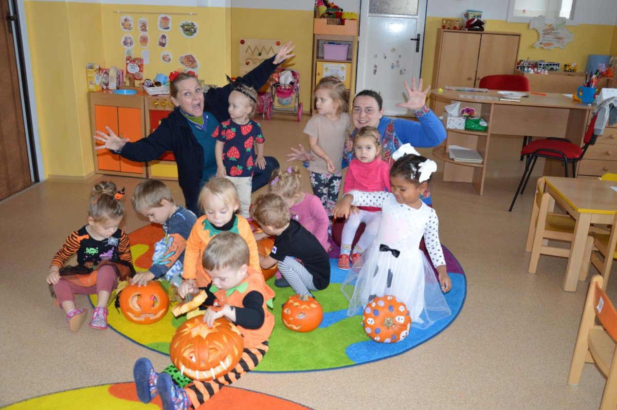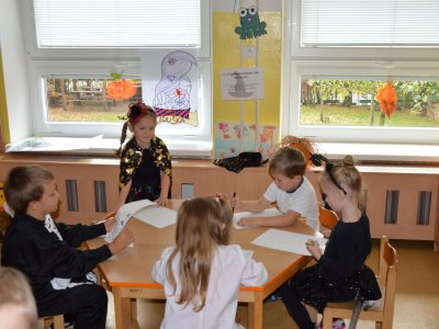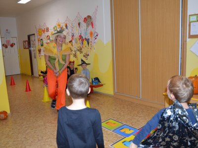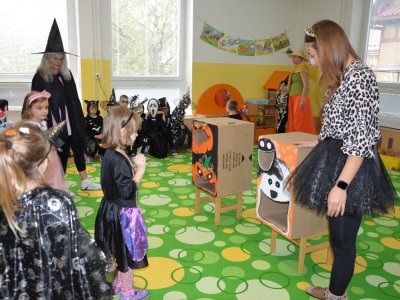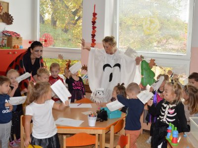 V úterý 31. října nás čekalo dopoledne s názvem „Školka strašidel“. Naše školka se změnila na strašidelnou komnatu plnou kostlivců, duchů, upírů, dýní a všelijakých dalších bytostí. Paní učitelky ze třídy Žabiček dětem připravily překvapení v podobě jednotlivých stanovišť se zábavnými úkoly. Děti se prolétly na koštěti, zkusily si hod do dýně, vyzdobily klobouk pro čarodějnici, užily si dopoledne plné kouzelných zaklínadel a her.
