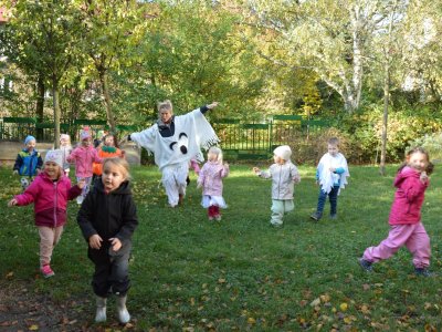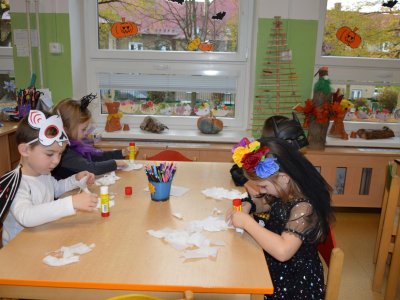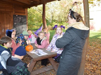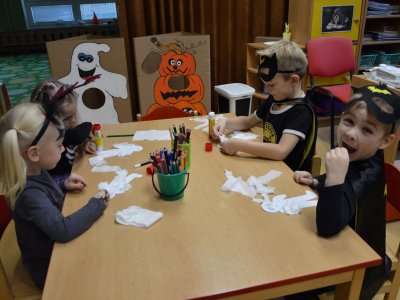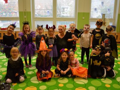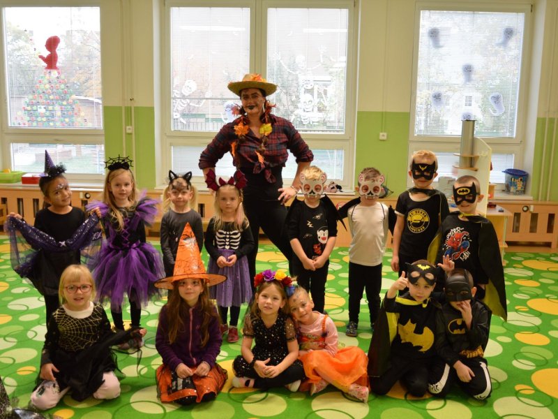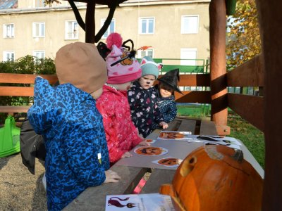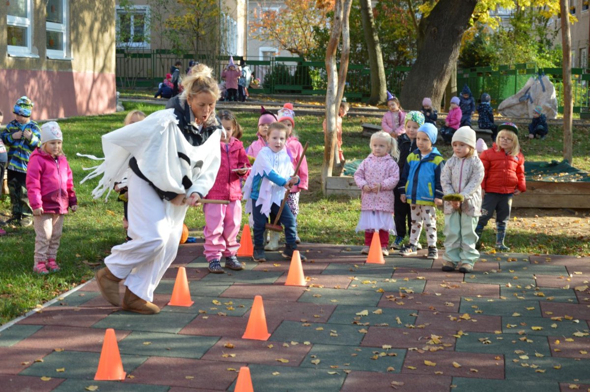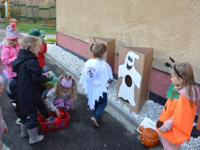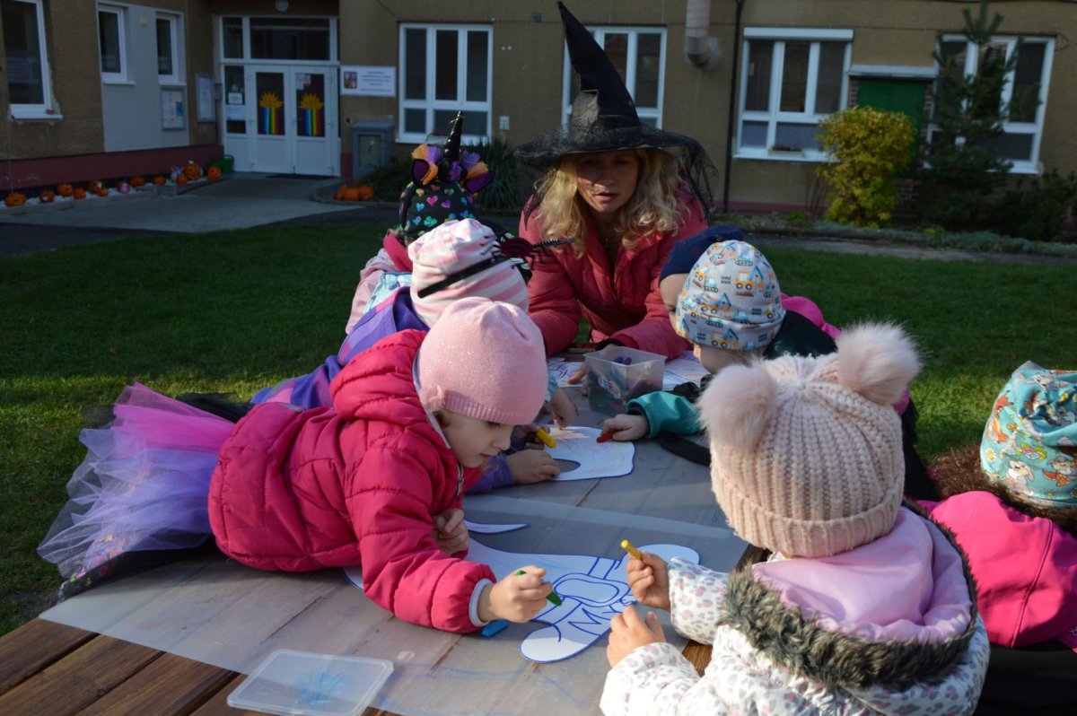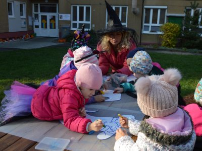 Ve čtvrtek 24. října nás čekalo dopoledne s názvem „Strašidla mezi námi“. Naše školní zahrada se změnila na strašidelnou komnatu plnou duchů, upírů, dýní a všelijakých dalších bytostí. Paní učitelky ze třídy Krtečků dětem připravily překvapení v podobě jednotlivých stanovišť se zábavnými úkoly. Děti se prolétly na koštěti, zkusily si hod do dýně, vyzdobily klobouk pro čarodějnici, užily si dopoledne plné kouzelných zaklínadel a her.