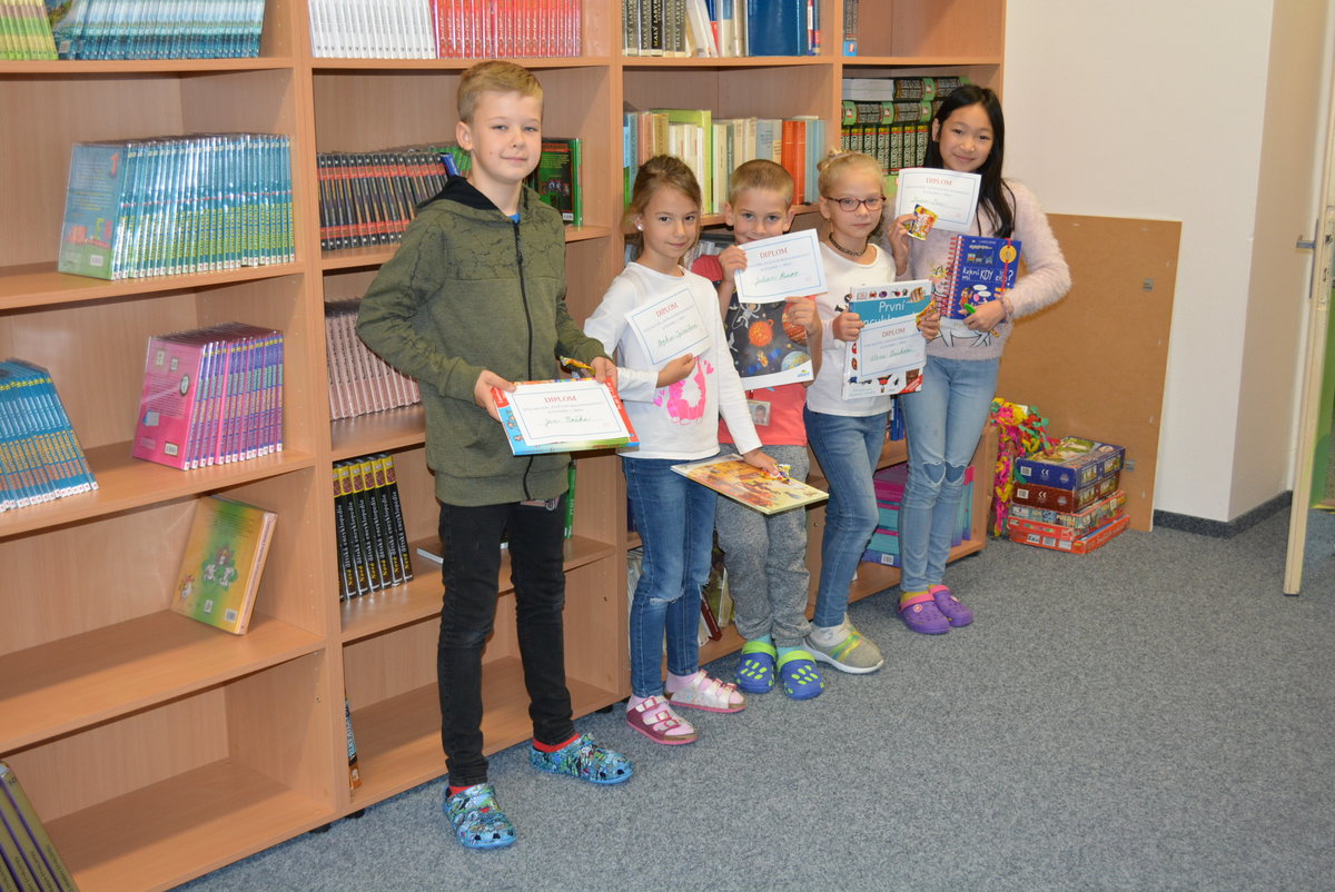 V rámci akce "Týden knihoven" proběhla na 1. stupni naší školy soutěž zaměřená na schopnost umět číst mezi řádky a dovednosti orientovat se ve známých prostorách. Výherců je hned několik a to vždy za každý ročník od 2. do 5. Gratulujeme Sophince Zpěváčkové, Julianu Rizovi, Alence Ocáskové, Lucince Luu a Honzíku Nožkovi.