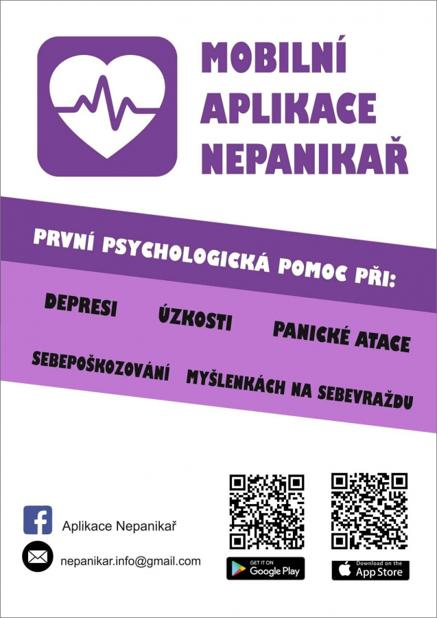 https://nepanikar.eu/ - Mám problém jít doškoly? Mám panickou hrůzu? Jsem, dlouhodobě smutný, mám špatnou náladu? Trápí mě černé myšlenky? Sebepoškozuji se? Tyto stránky nebo appka mi mohou pomoci.