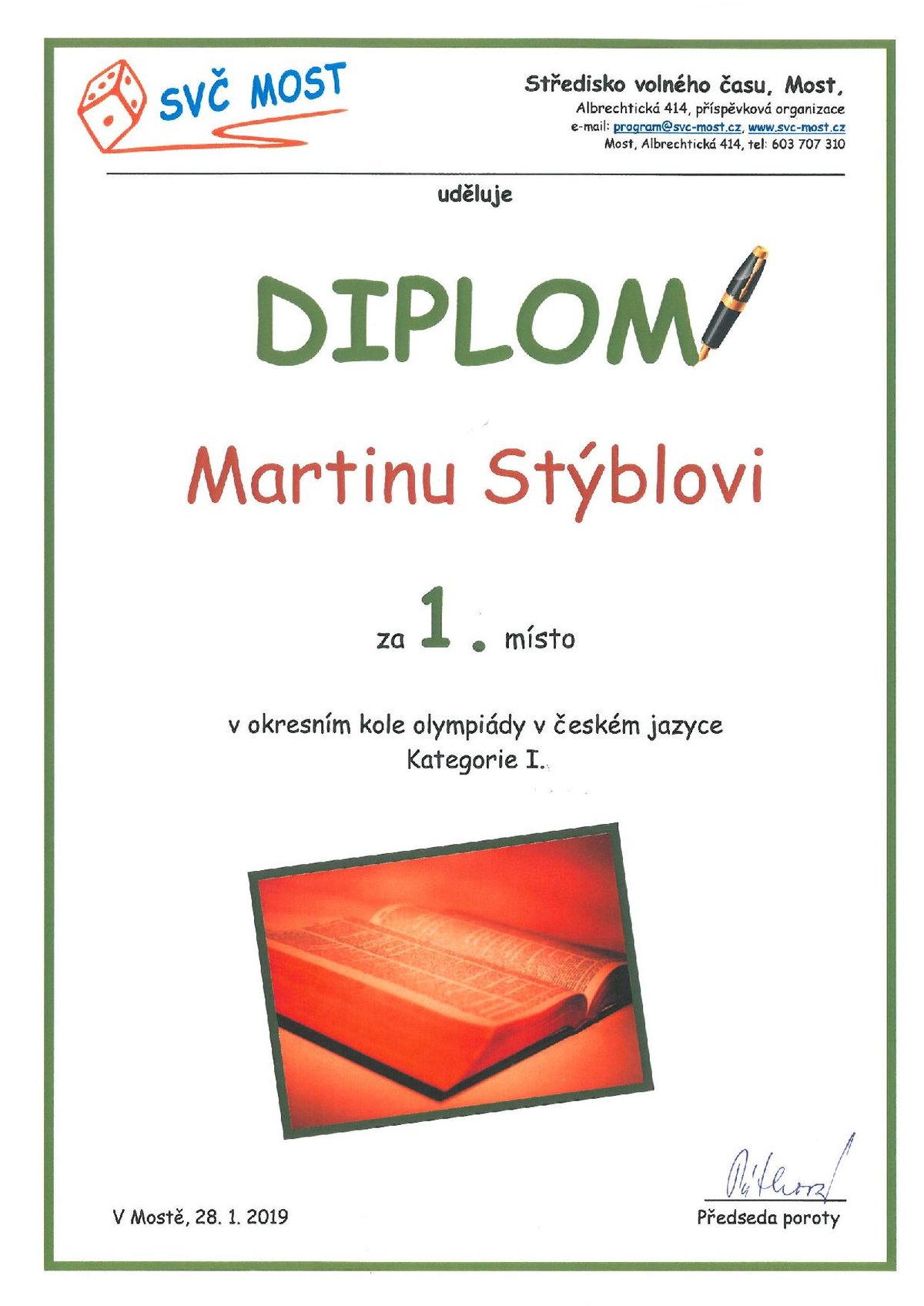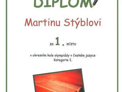 1. místo - Okresní kolo olympiády v Českém jazyce