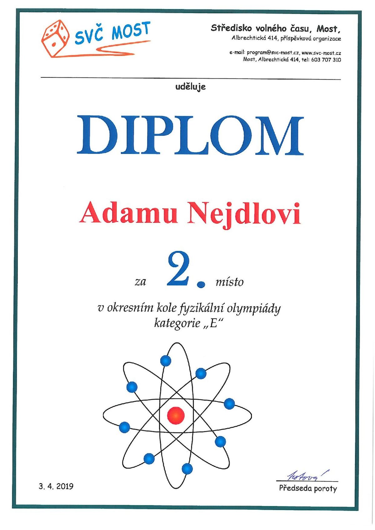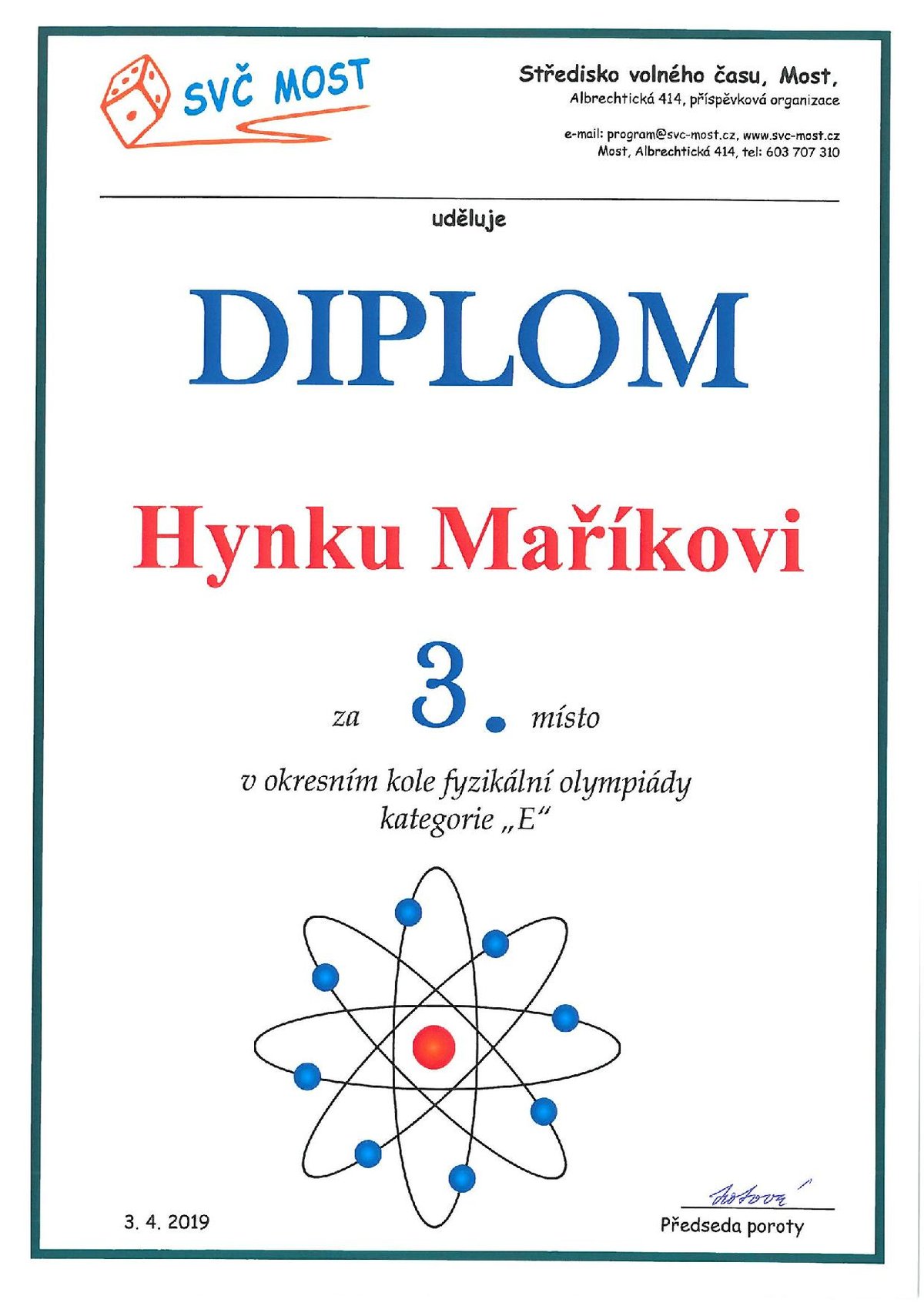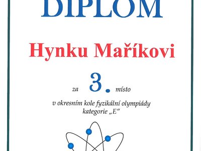 2. a 3. místo fyzikální olympiáda - Hynek Mařík a Adam Nejdl