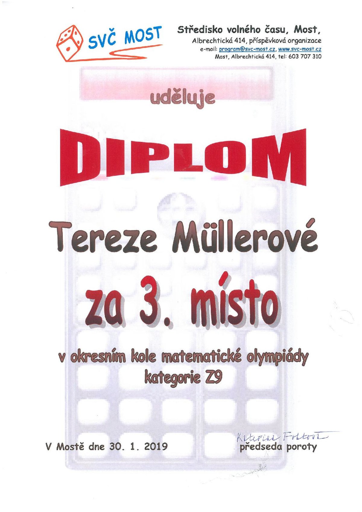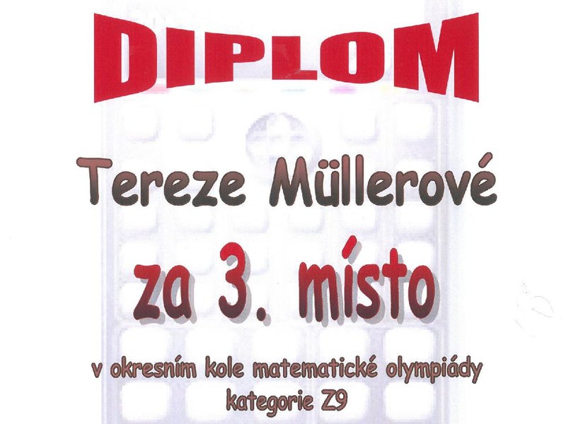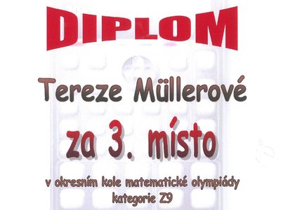 3. místo v okresním kole matematické olympiády - Tereza Müllerová