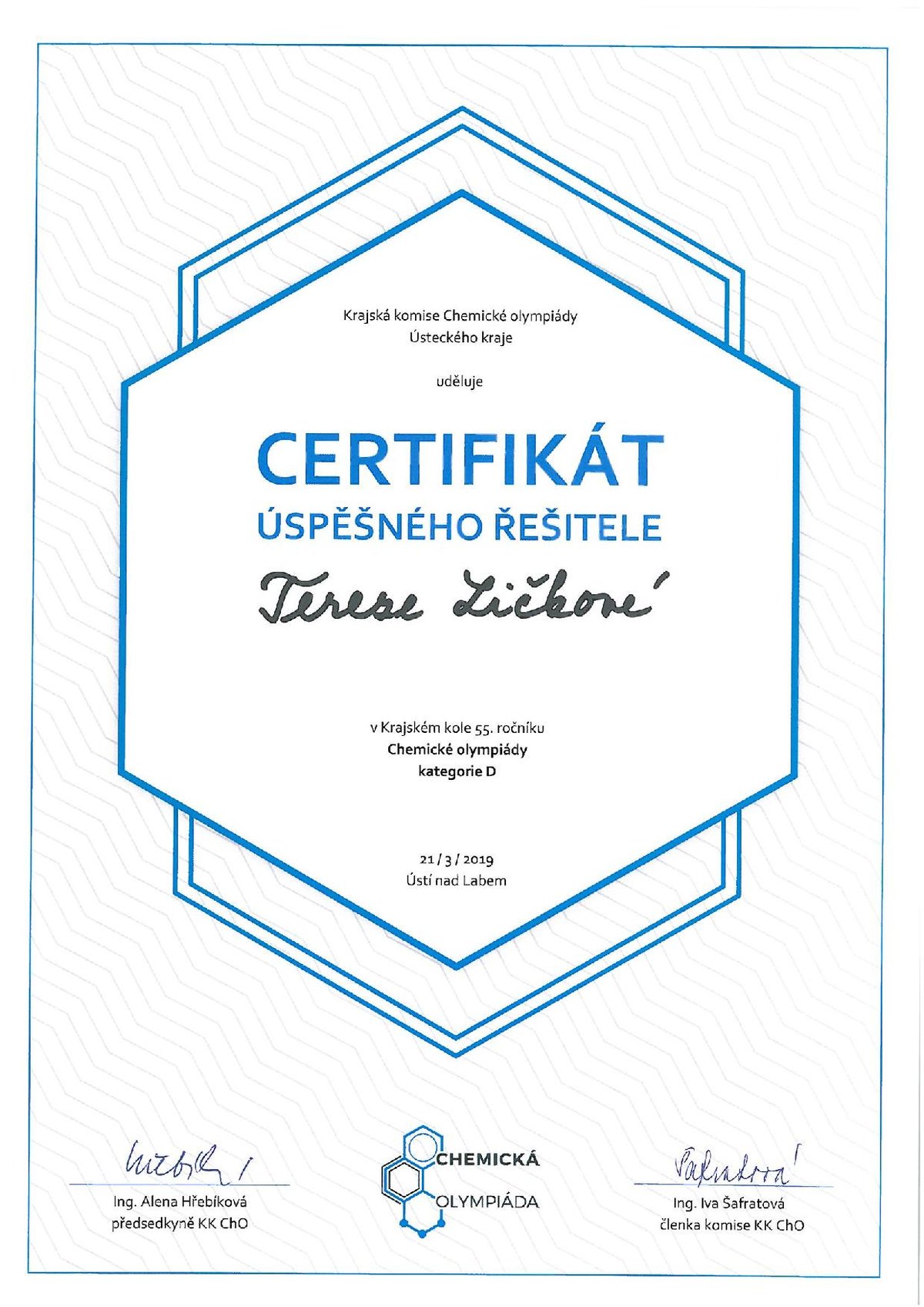 Tereza Ličková, Martin Stýblo - krajské kolo chemické olympiády