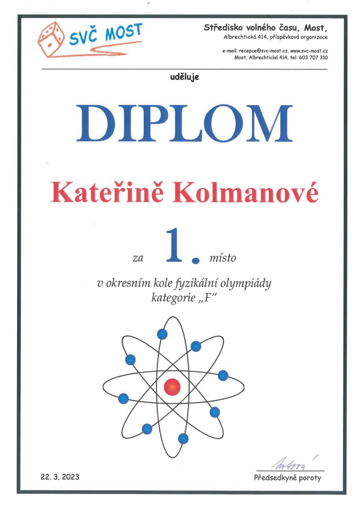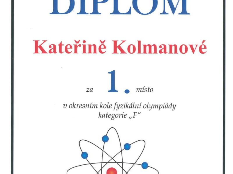 1. místo fyzikální olympiáda - Kateřina Kolmanová