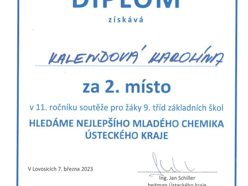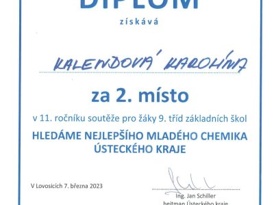 2. místo "Hledáme nejlepšího mladého chemika Ústeckého kraje" - Karolína Kalendová