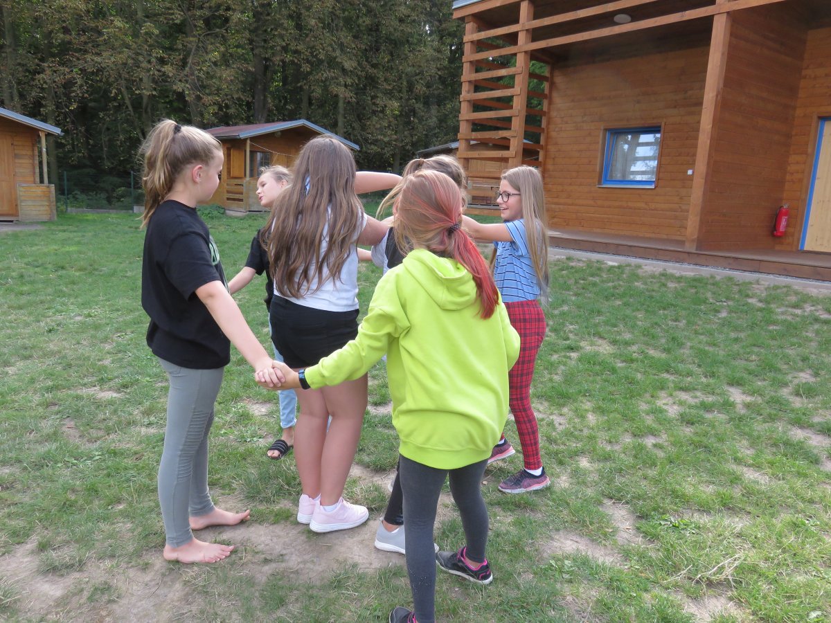 Hráli jsme hry a šli jsme do 3D bludiště. Spali jsme v chatkách po šesti a také nám moc dobře vařili. Byl to moc příjemný začátek školního roku.