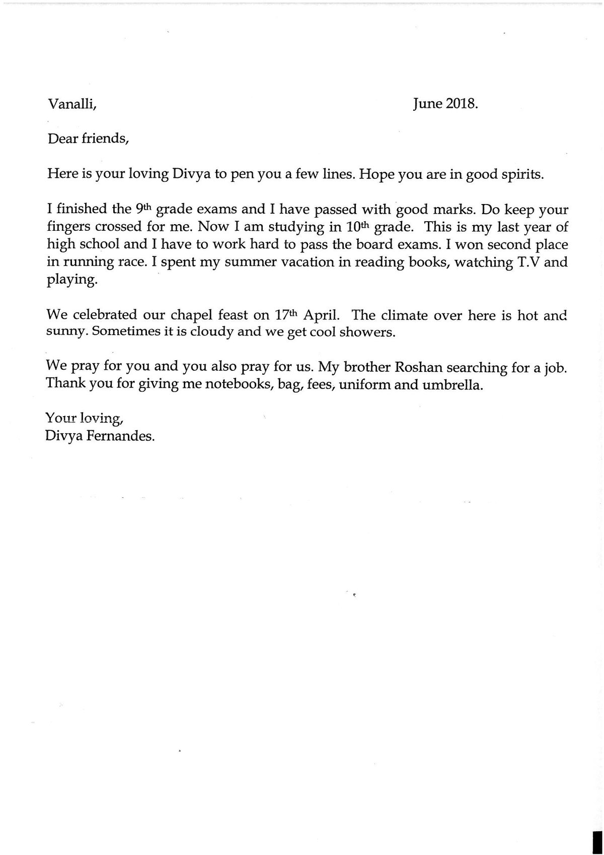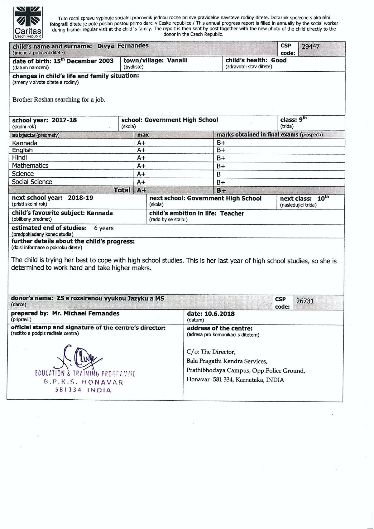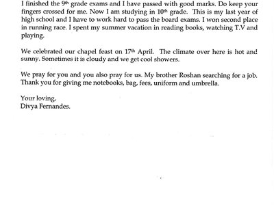 Naše škola již řadu let podporuje v rámci projektu Adopce na dálku indickou dívku Divyu. Školné můžeme uhradit díky finančnímu výtěžku ze soutěže ve sběru papíru. Tímto ještě jednou děkujeme všem zúčastněným.