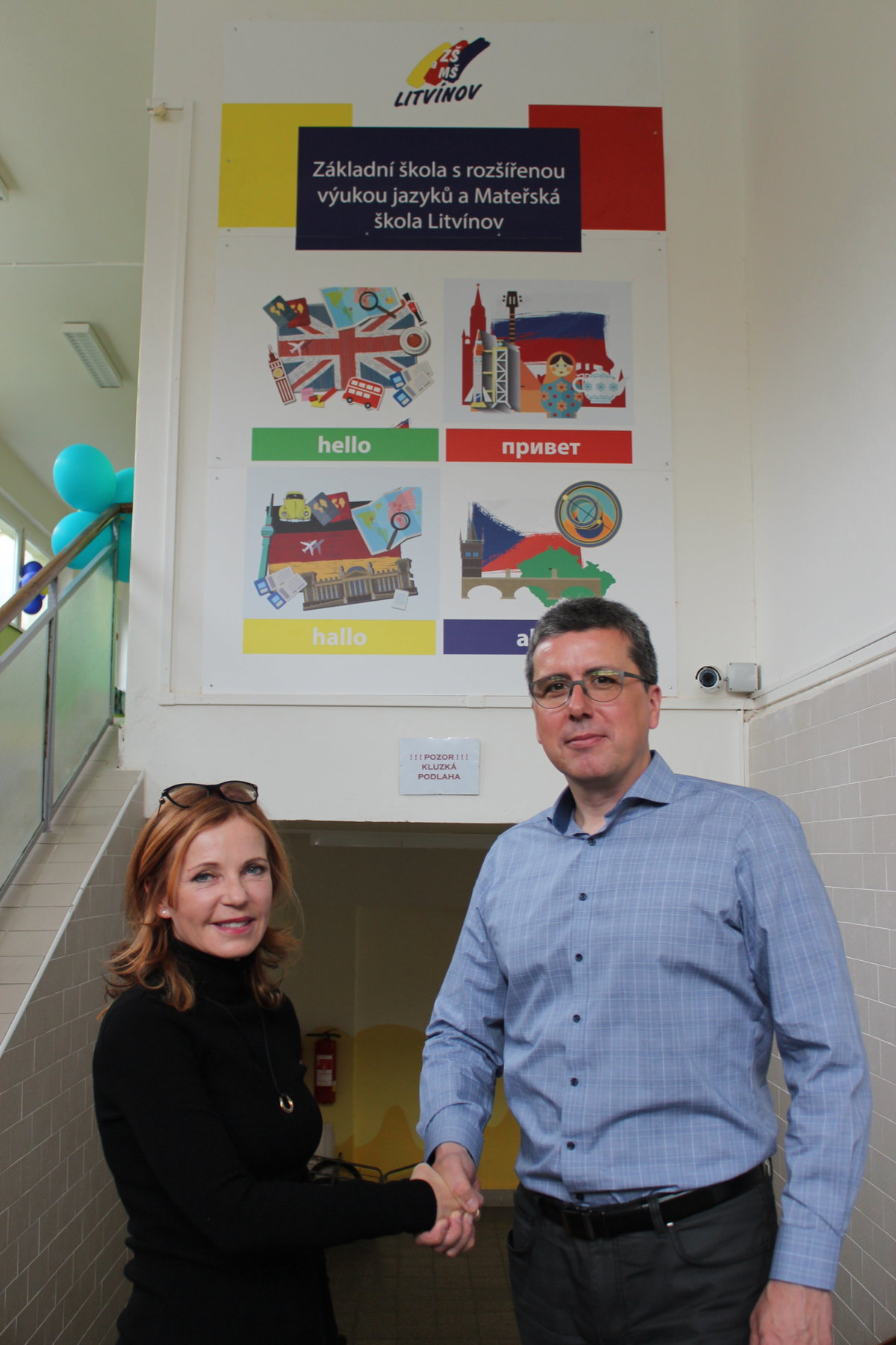 Dnes proběhla inicializační schůzka o budoucí možné spolupráci se zástupcem společnosti United Energy a Severočeská Teplárenská obchodním ředitelem UE, a.s. a ředitelem ST, a.s. Ing. Petrem Horákem. Při jednání byly probrány možnosti podpory v oblasti základního a předškolního vzdělávání, byly představeny projekty na rekonstrukci učebny fyziky, jazykové učebny a zejména pak polytechnické učebny. Právě v této oblasti bylo dosaženo shody při nutnosti zvyšování technických dovedností našich žáků. K tomuto účelu je zřizována polytechnická učebna, na kterou již dnes čeká vybavení 3D tiskárna, robotická ruka Merkur, zobrazovací zařízení s úhlopříčkou 1,9 metru a další brzy přibyde.