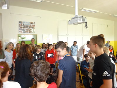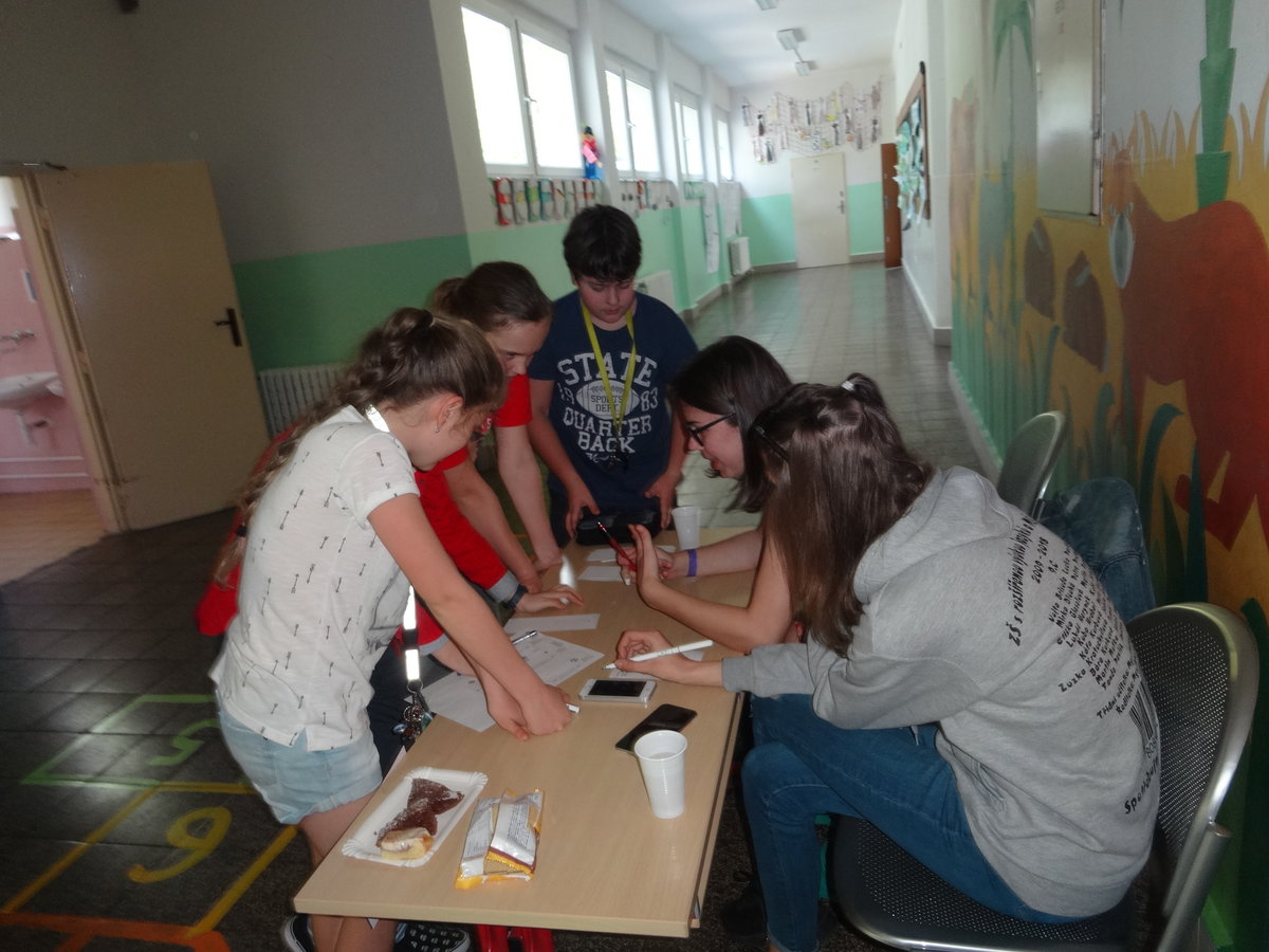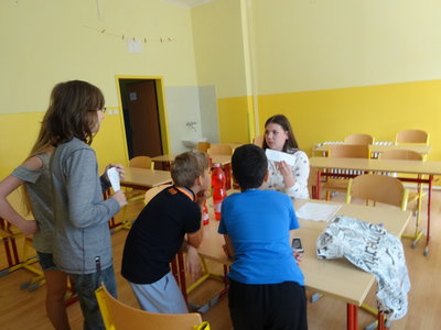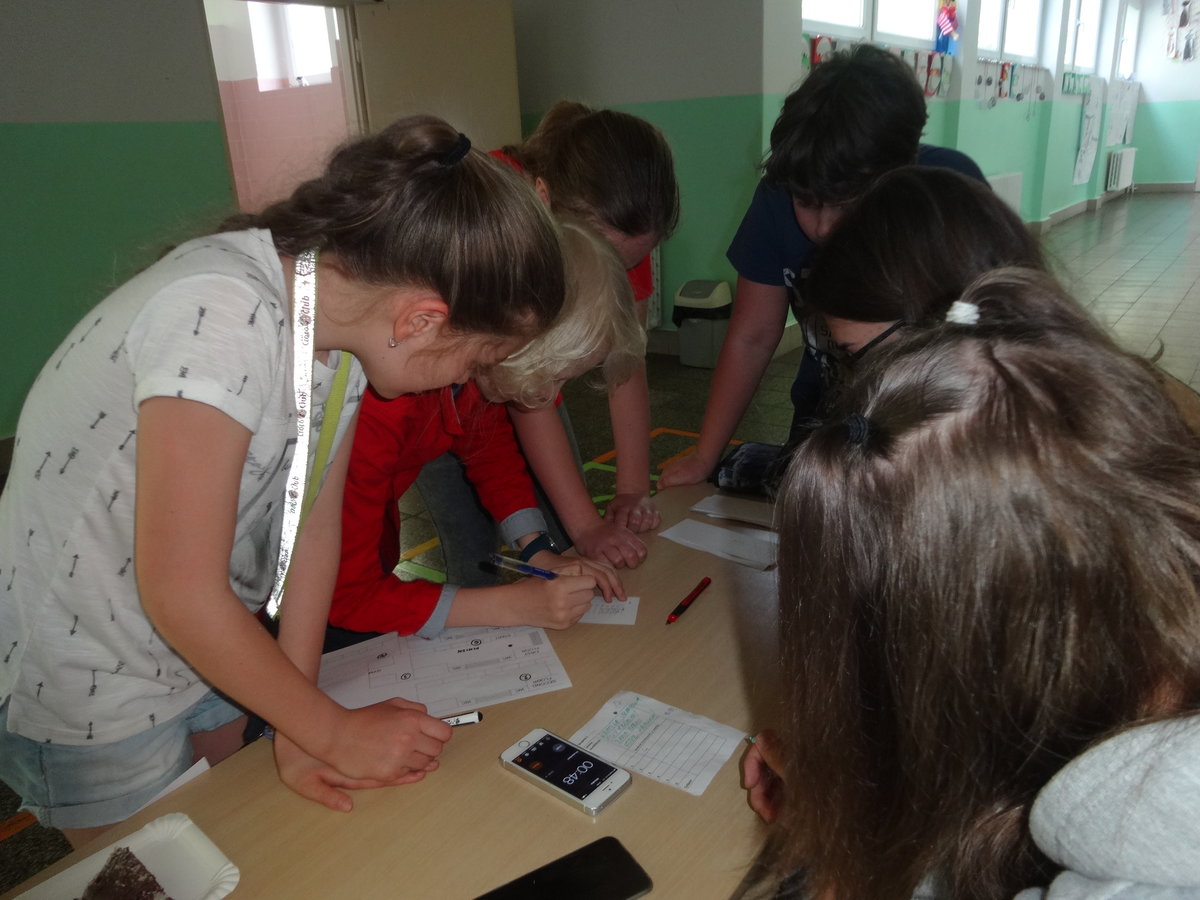 Školy, které u nás nesoutěžily poprvé, již vědí. Registrace, občerstvení pro každého soutěžícího, zahajovací proslov paní ředitelky. Pak mapa školy do ruky a vyrazit. Úkolem je podle instrukcí na mapě najít všech šest stanovišť, tam splnit úkoly a v co nejkratším časovém limitu doběhnout do cíle.