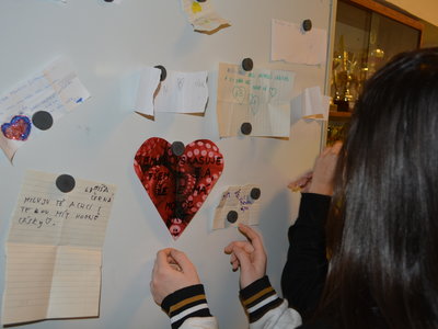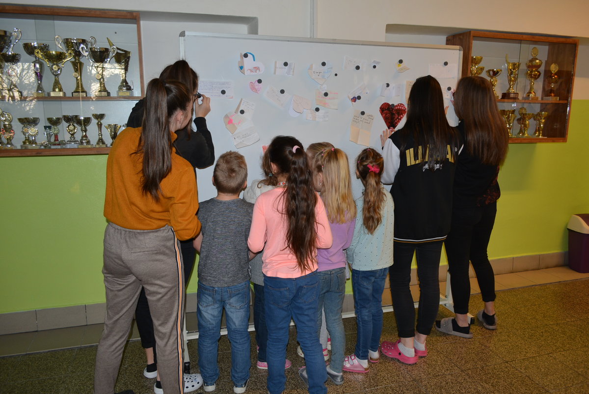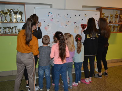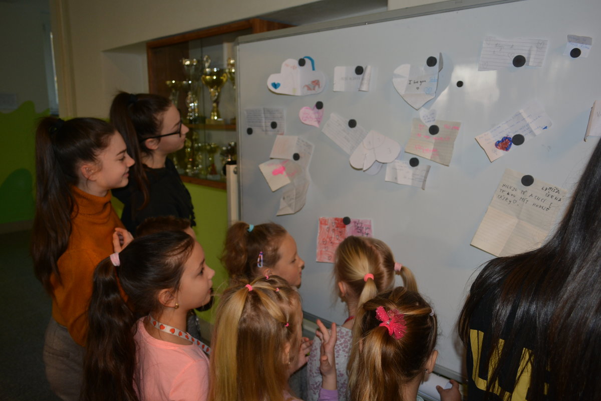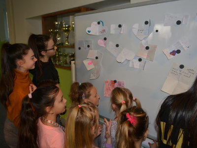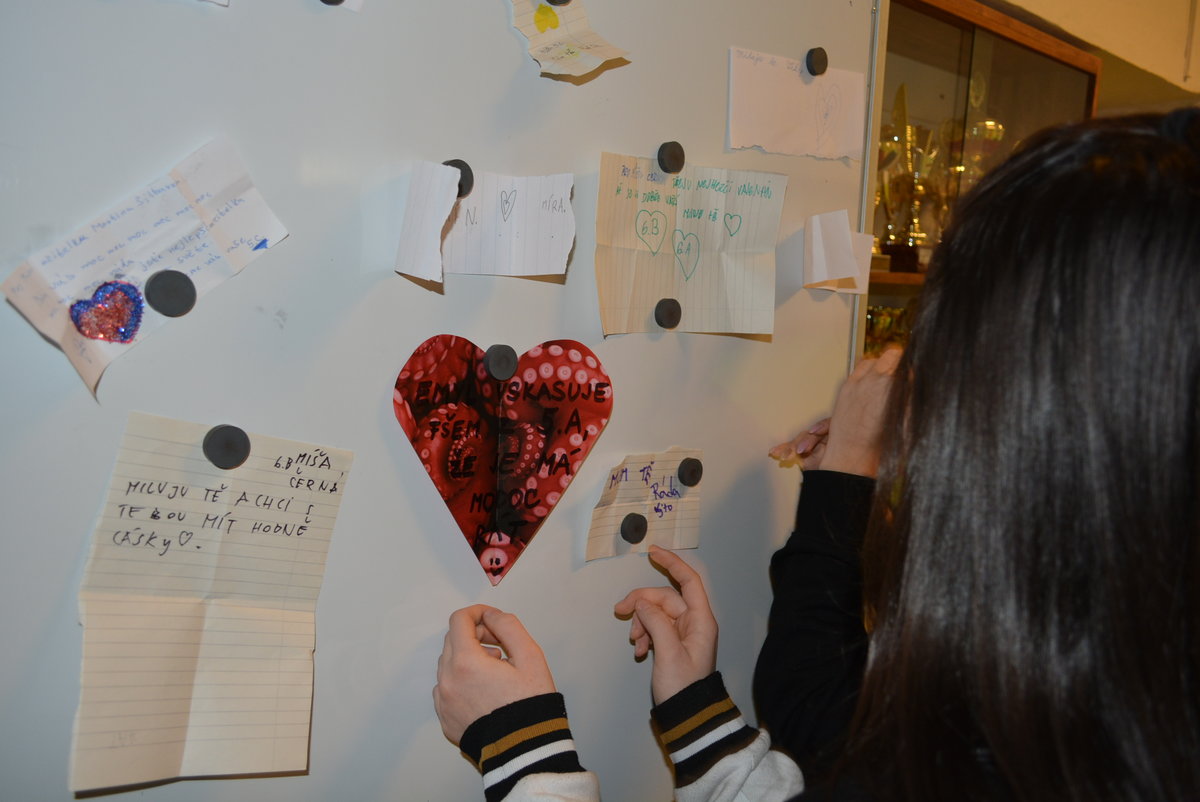 Každý žák naší školy mohl poslat "Valenýnku" komukoliv ve škole. Stačilo napsat na papírek, nebo "lepík" vzkaz a vhodit do schránky. Vzkazy byly pak vybrány a zveřejněny na tabuli na chodbě.