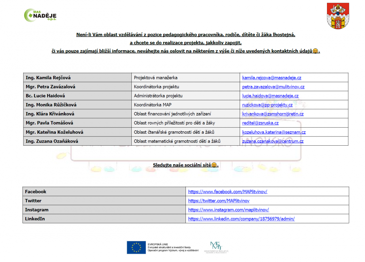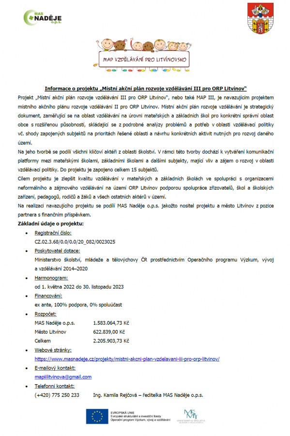 Informace o projektu Místní akční plán vzdělávání III ORP Litvínov
