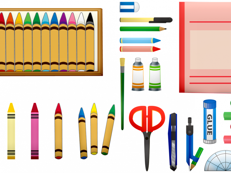 - igelit, nůžky, lepidla (tekutý Herkules, tuhé v tyčince), sada štětců, hadřík, vodovky, tempery, voskovky, suchý pastel, černý fix (slabý a silný), tuš, špejle, modelína