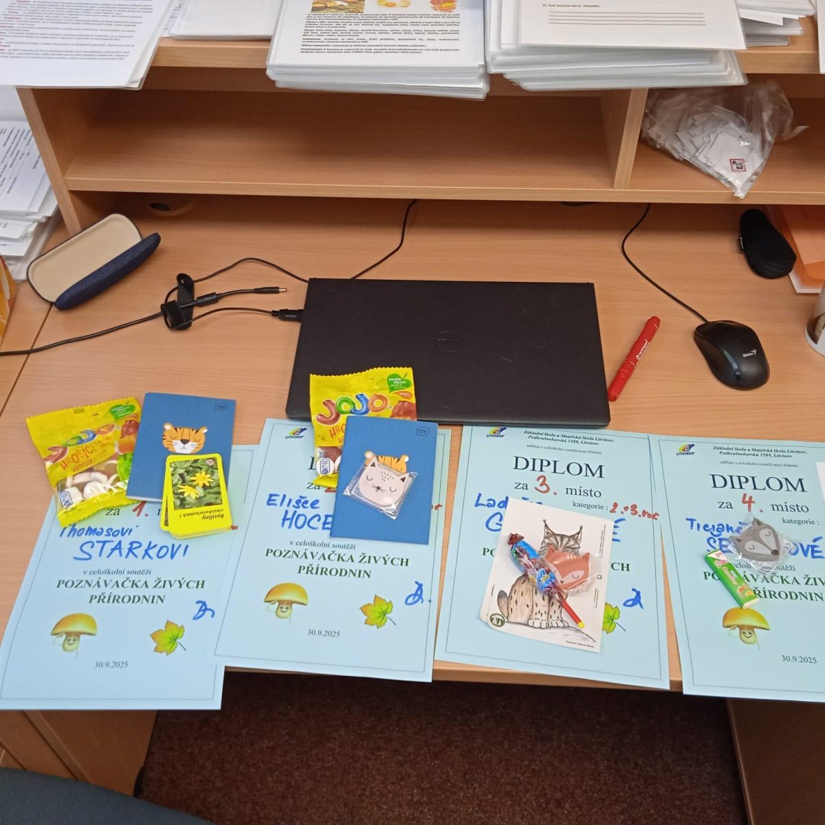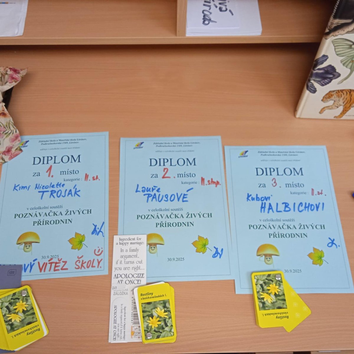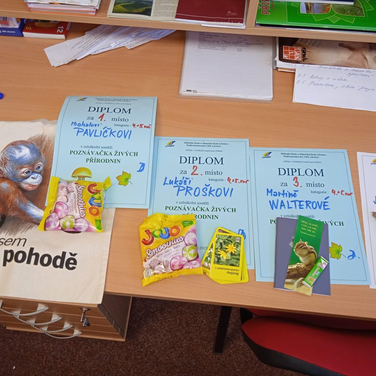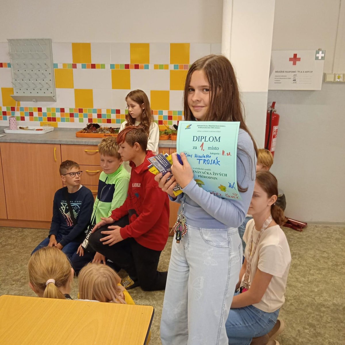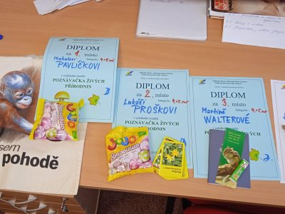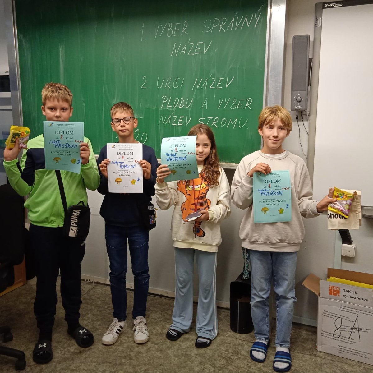 Děkujeme všem soutěžícím za účast a blahopřejeme vítězům, zejména žáku 5.A Michalu Pavlíčkovi, který byl jen o bod za suverénní vítězkou a velkou znalkyní, nejen přírody, žákyni 7.A Kimi Nicolette Trojákovou.