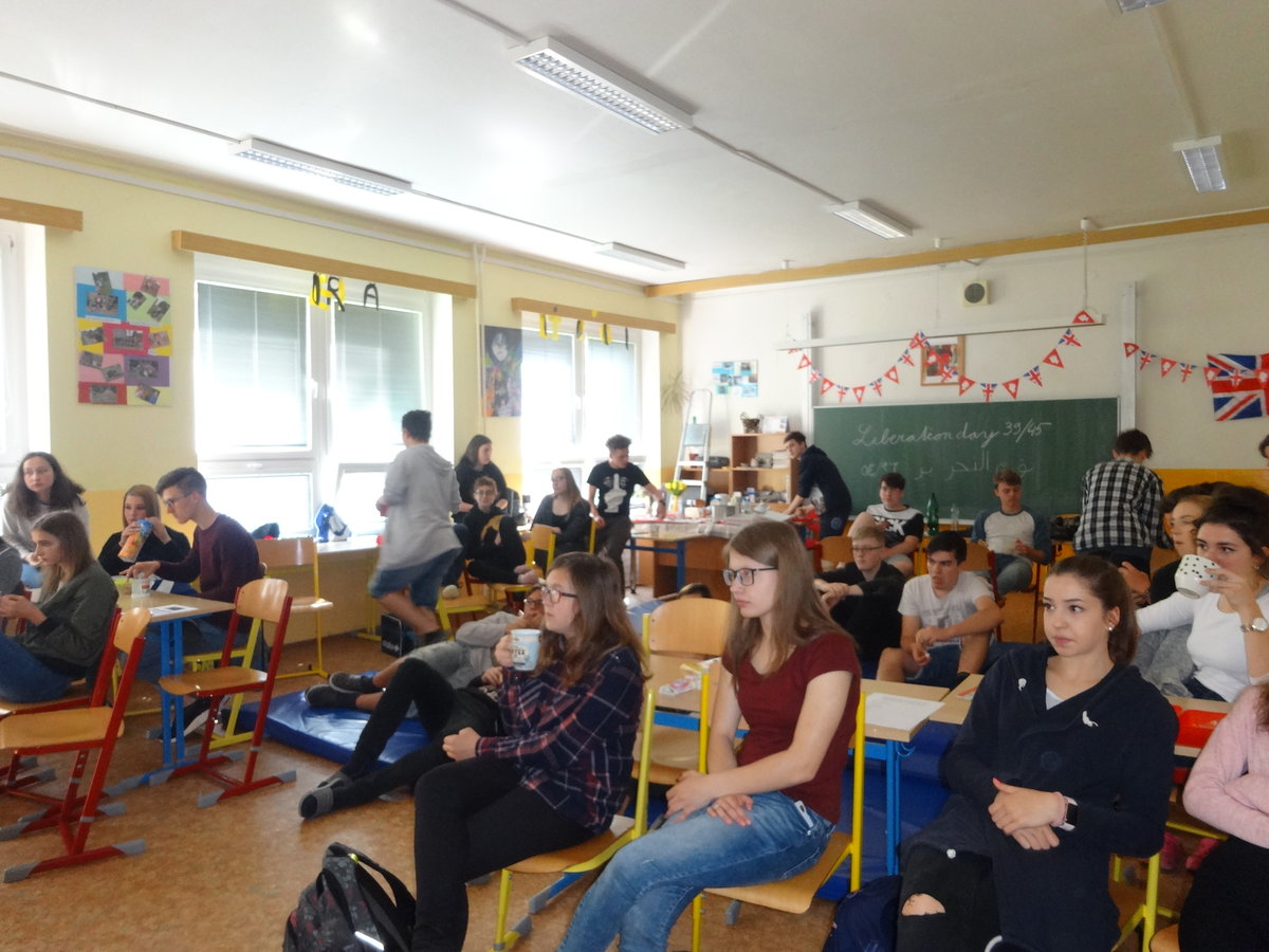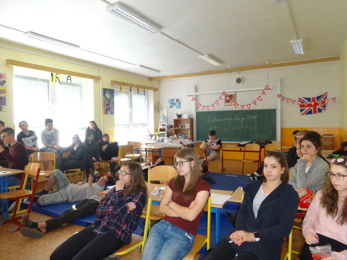 Konec 2. světové války a oslavy osvobození spadají na 8. května, ale my jsme si tento významný den připomněli o 4 dny dříve během projektového dne v britsko-českém ladění, který pro nás připravila učitelka anglického jazyka Miss Jacob.