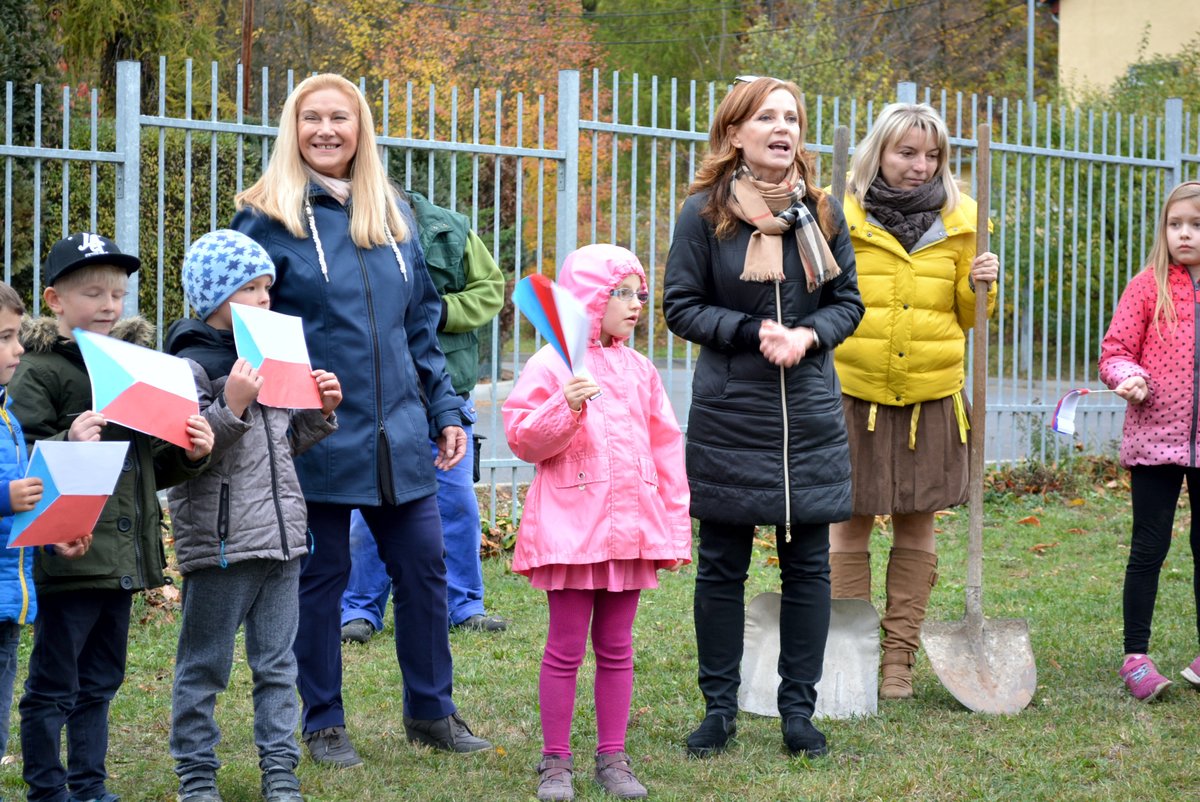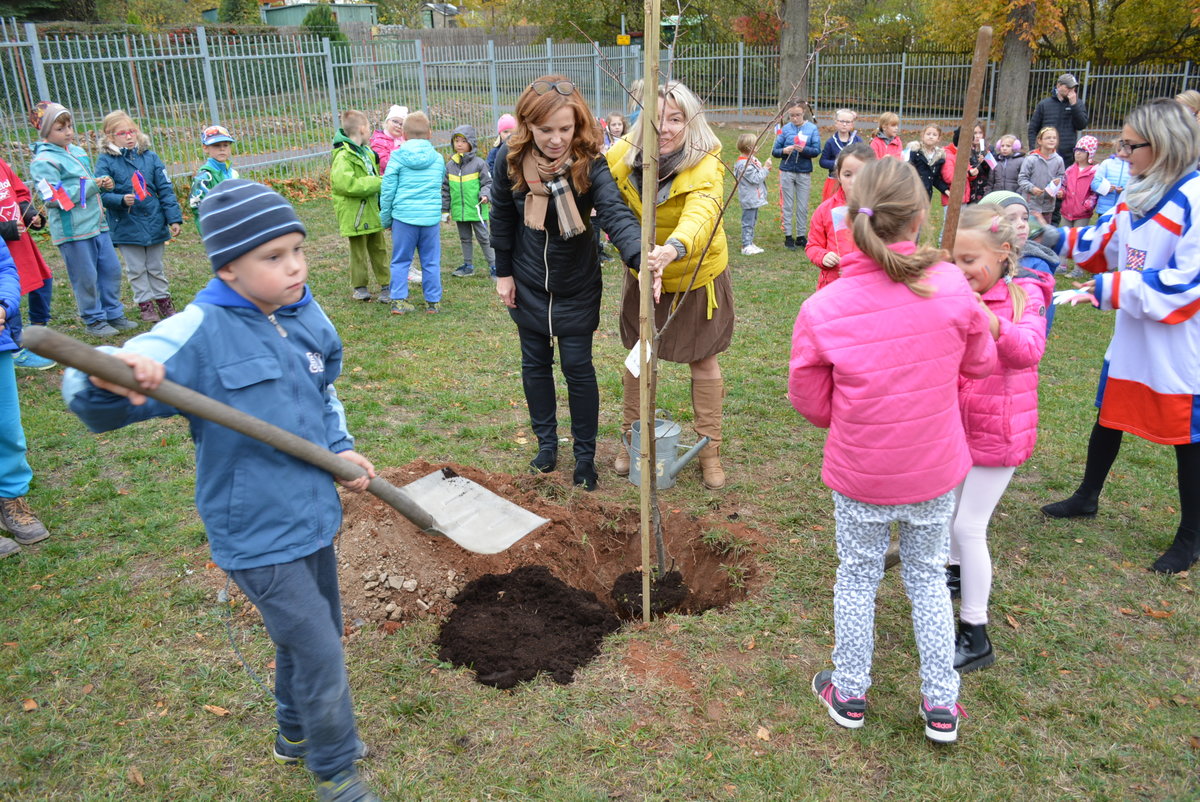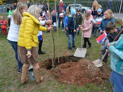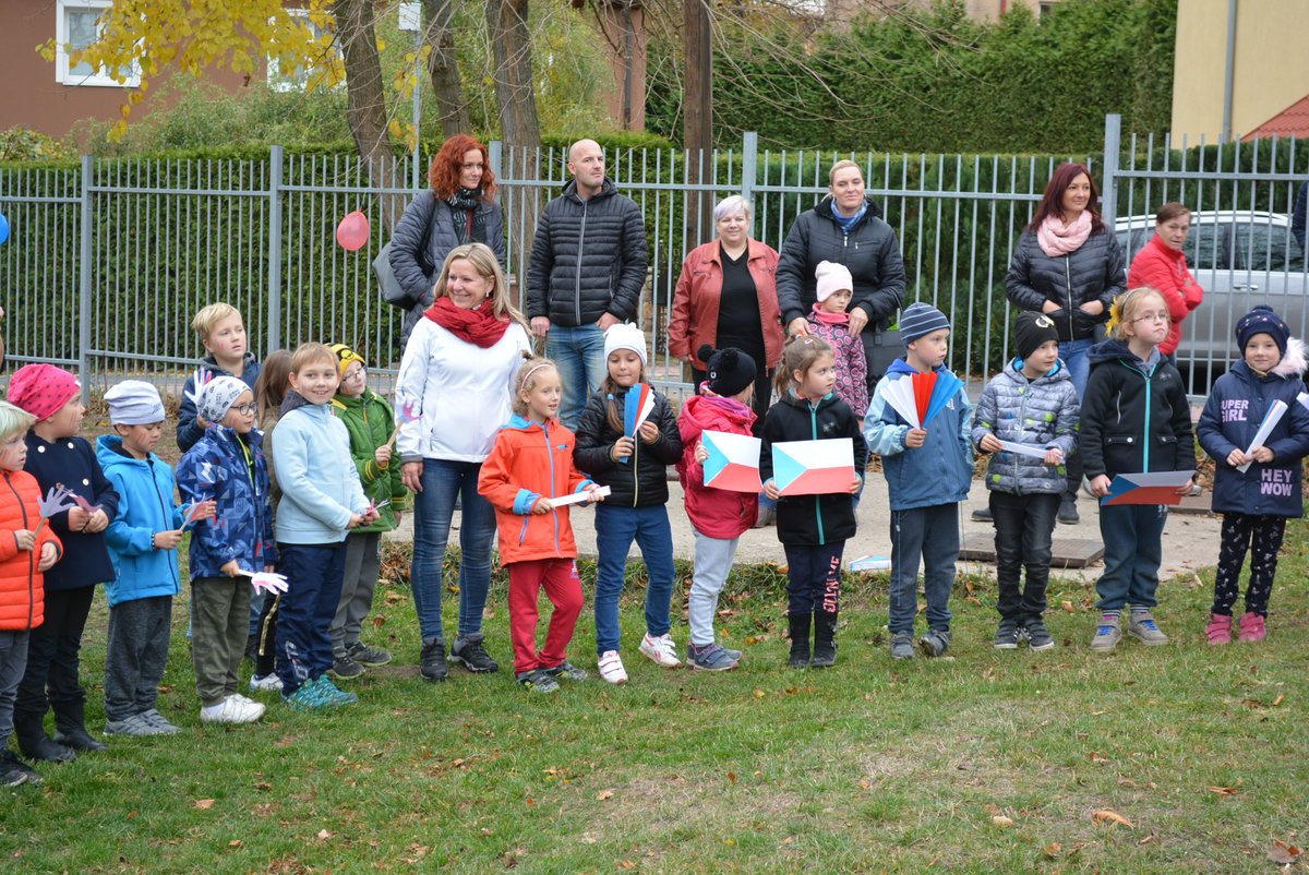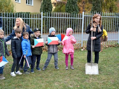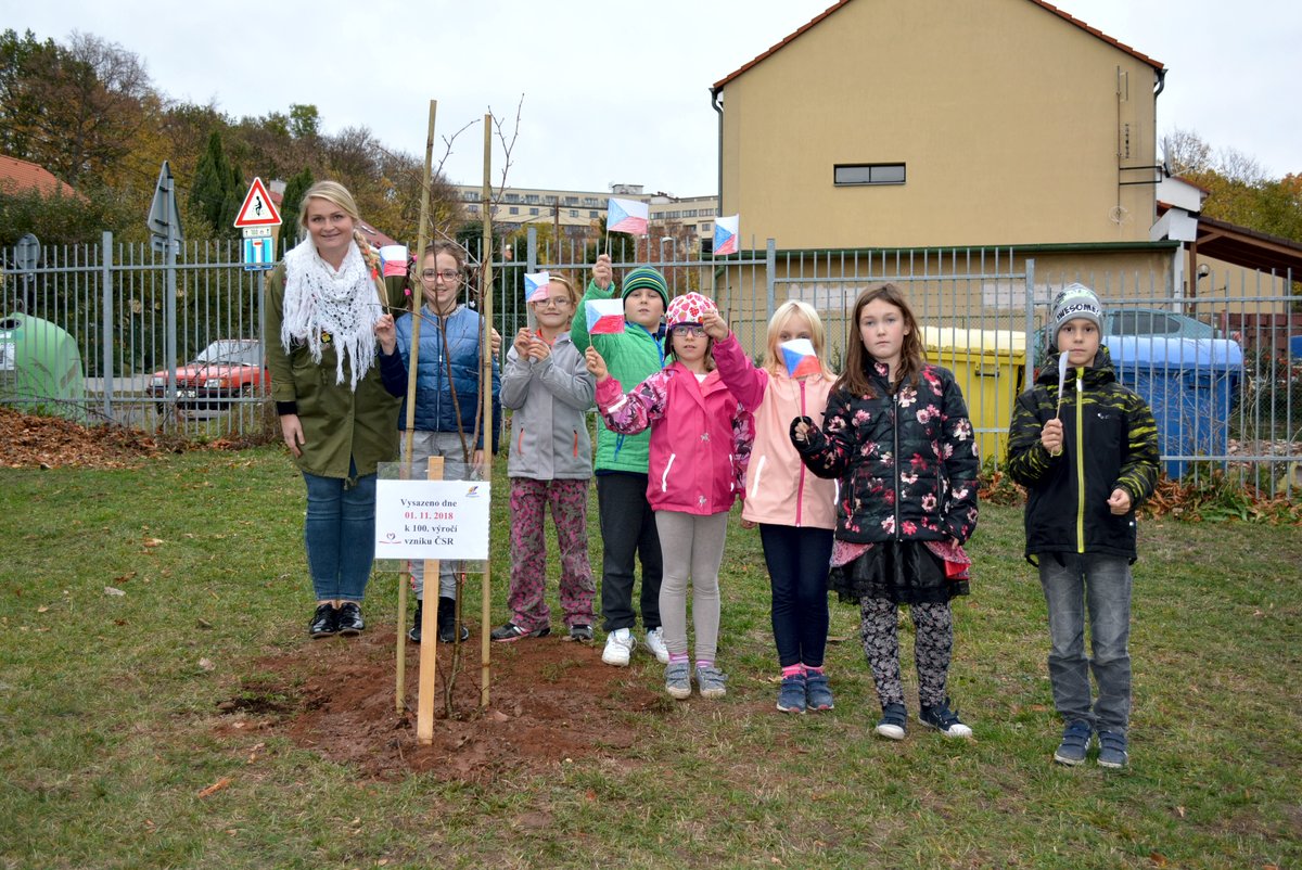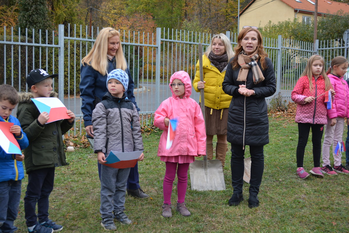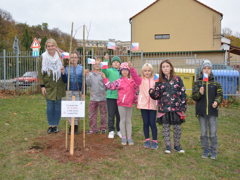 Připomněli jsme si našeho prvního prezidenta, jaké jsou naše národní barvy a jiné zajímavosti. Celé oslavy vyvrcholily dne 1. 11. 2018 sázením lípy na naší družinkové zahradě. Navštívila nás i místostarostka Litvínova, paní Sedláčková, která spolu s námi popřála lípě i republice všechno nejlepší.