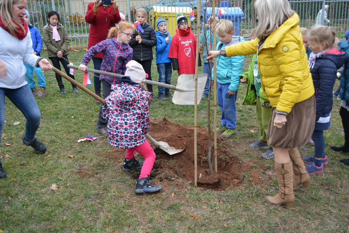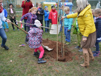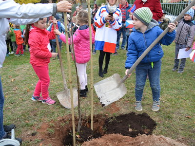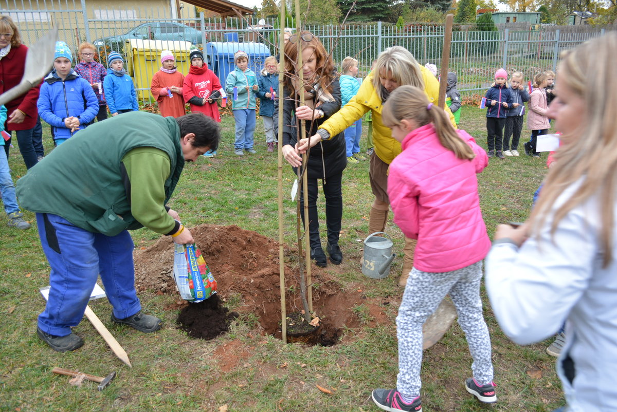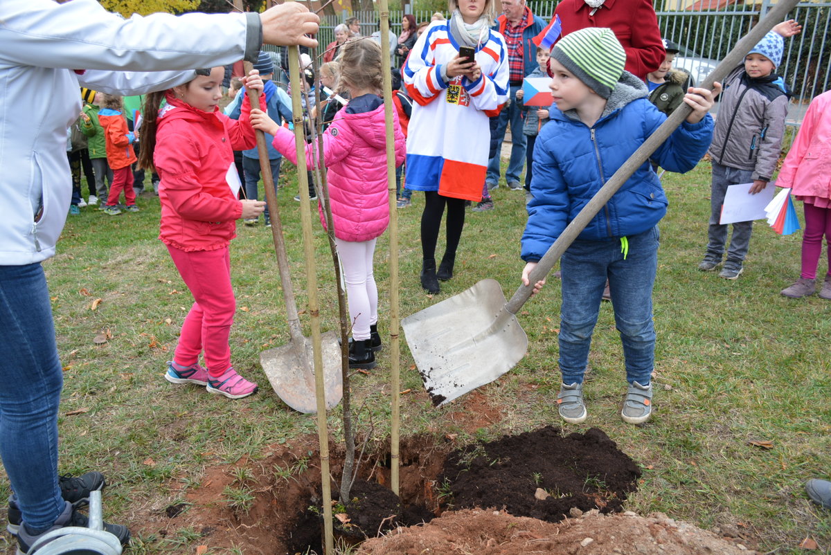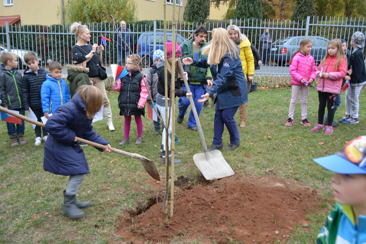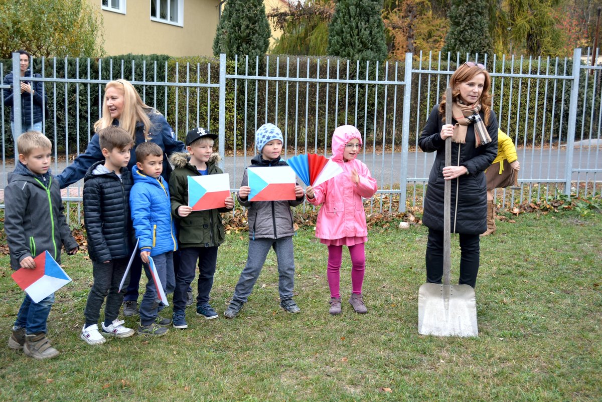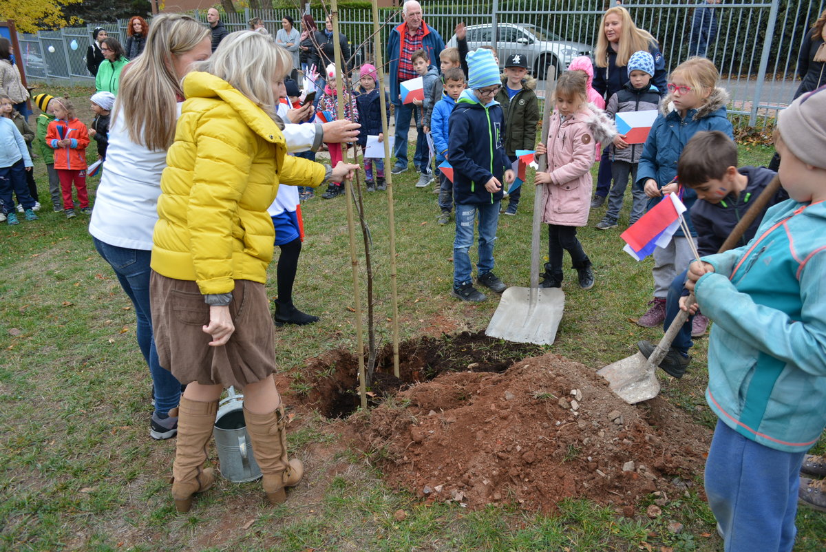 Připomněli jsme si našeho prvního prezidenta, jaké jsou naše národní barvy a jiné zajímavosti. Celé oslavy vyvrcholily dne 1. 11. 2018 sázením lípy na naší družinkové zahradě. Navštívila nás i místostarostka Litvínova, paní Sedláčková, která spolu s námi popřála lípě i republice všechno nejlepší.