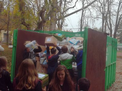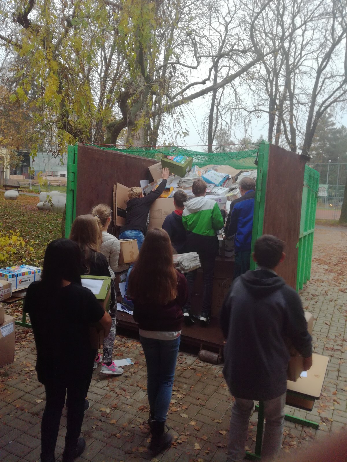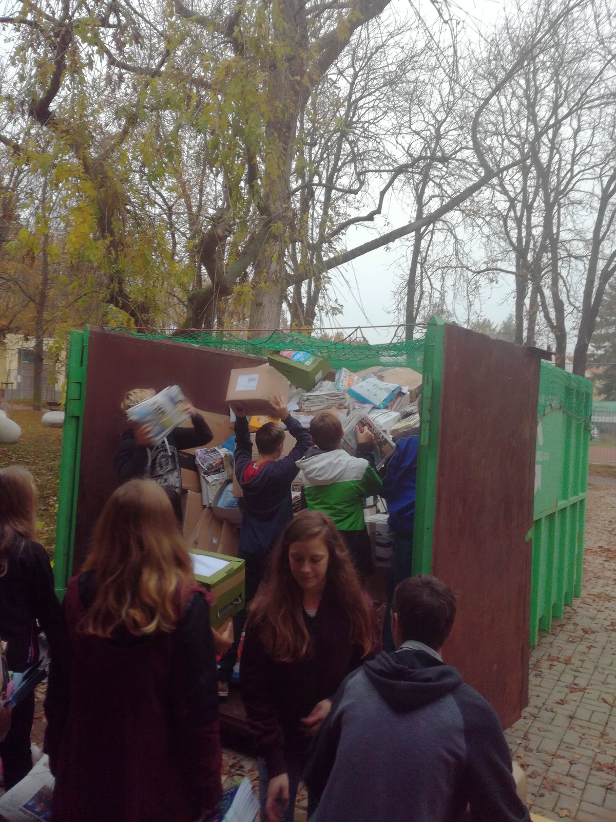Děkuji ještě jednou všem, zvlášť bych ale chtěla poděkovat paní učitelce R. Daňkové, I. Brudnové a G. Baborové, za jejich pomoc s organizací, dále pak pánům školníkům, všem žákům, kteří sběr pomáhali vážit a nakládat. Zvláštní poděkování zaslouží také Hynek Mařík z 8. B, který pomáhal z vlastní iniciativy po celou dobu akce.