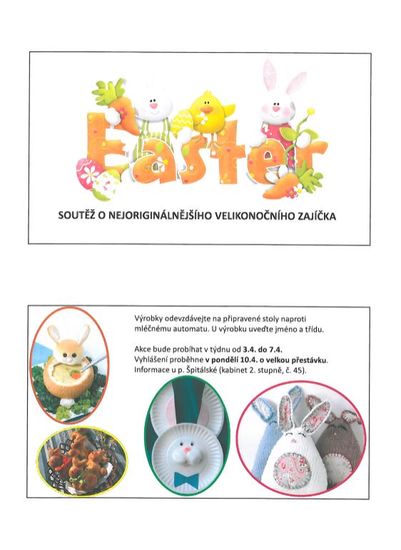 Akce bude probíhat v týdnu od 3. 4. - 7. 4. 2017 ( pondělí - pátek). Vyhlášení v pondělí 10. 4. 2017 o velkou přestávku.