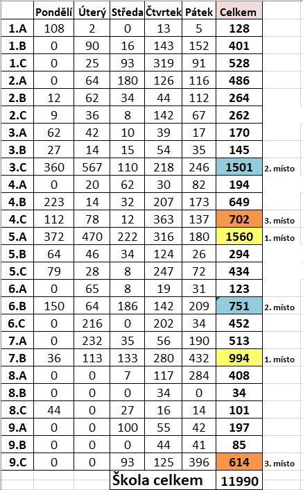 Děkujeme všem, kteří se zúčastnili a vítězným třídám patří velká gratulace .