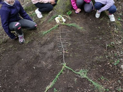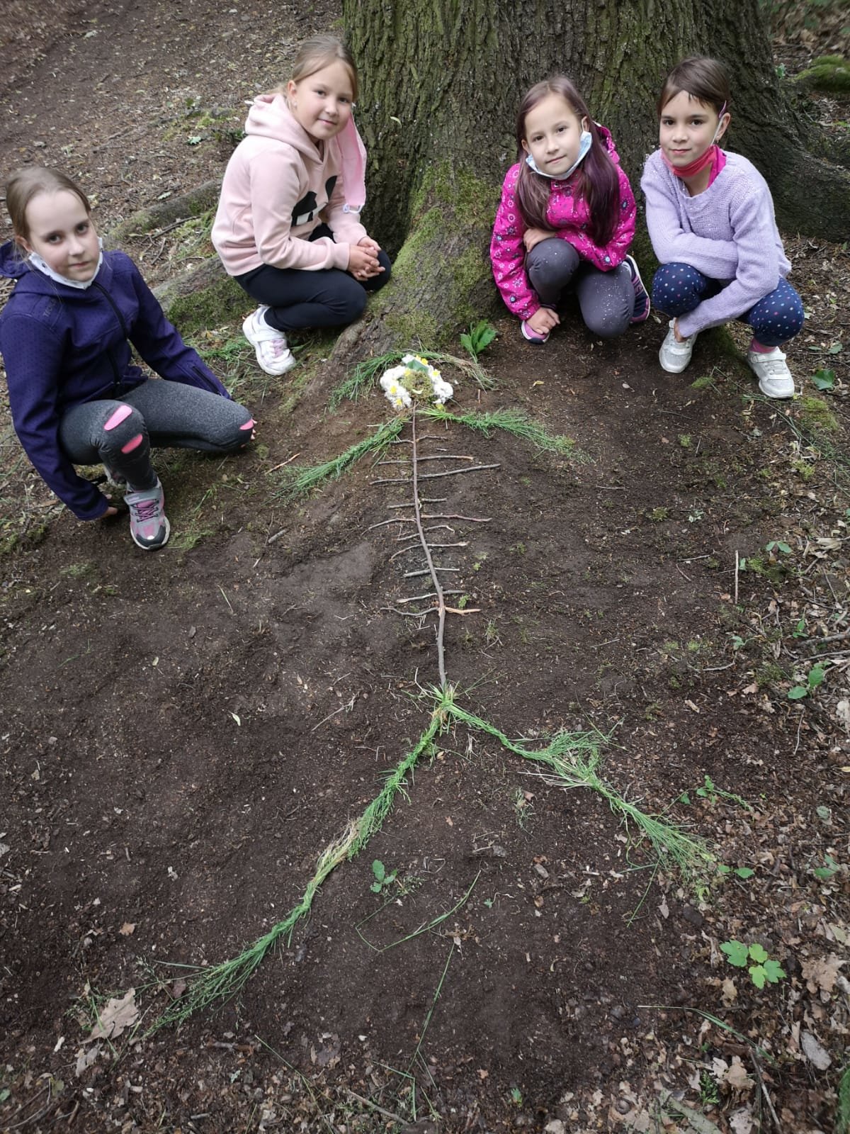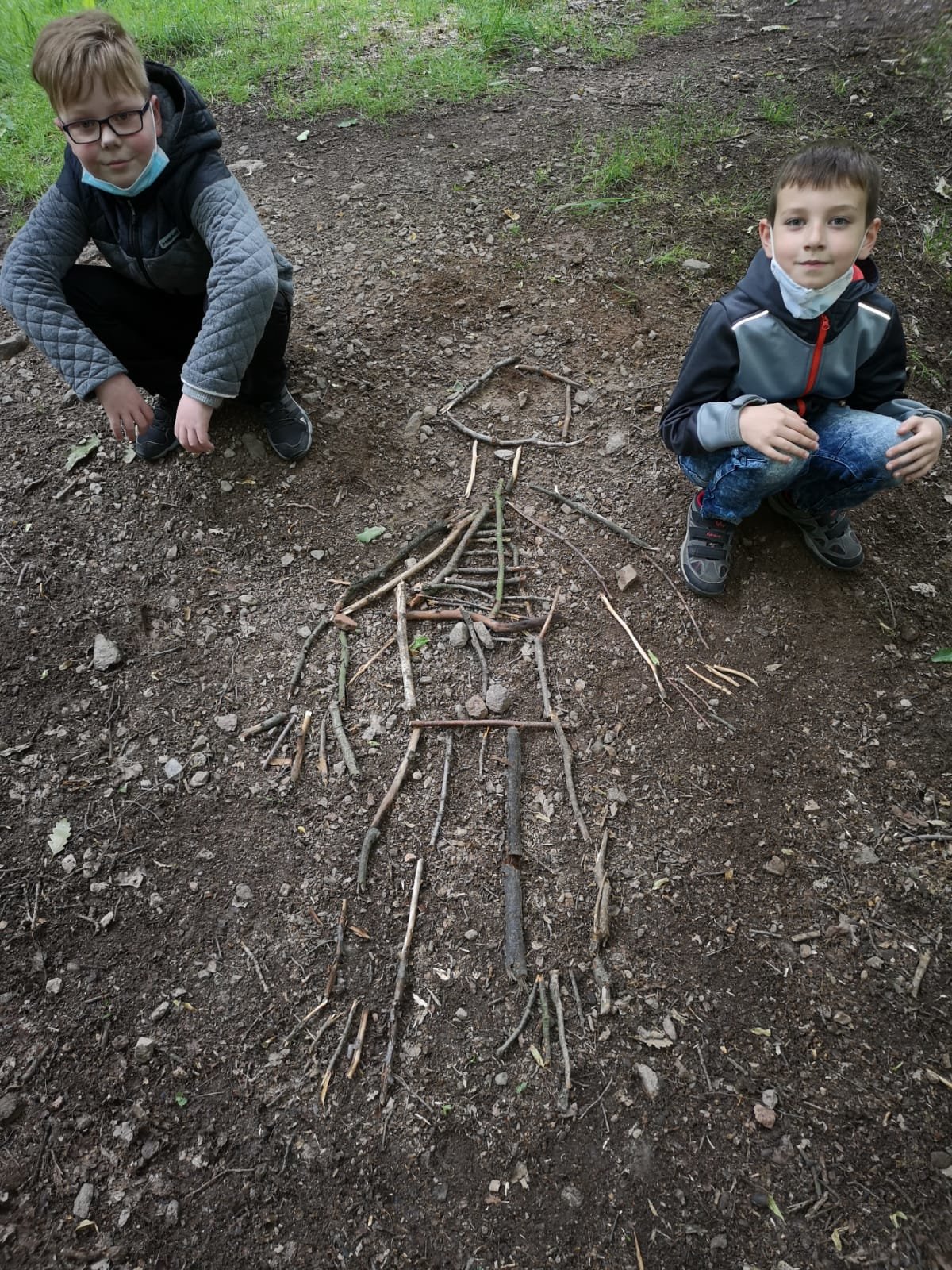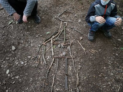 Žáci třetích ročníků si vyzkoušeli jak může také vypadat výuka mimo prostory školy. Sami si poradili s učebními pomůckami. V tomto případě stavba kostry člověka.