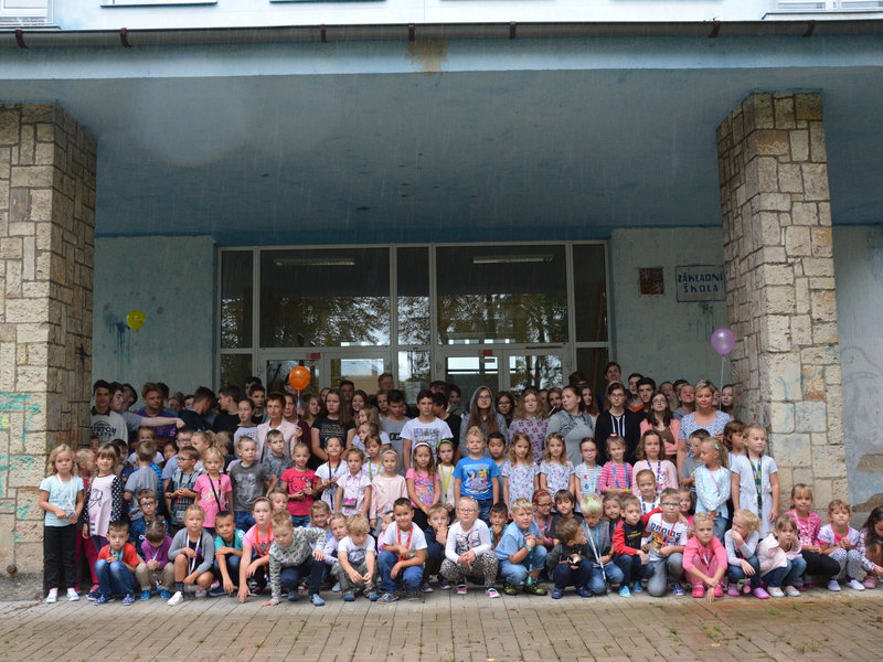 Na pomoc jim přišli naši nejstarší žáci. Přání svým malým kamarádům pomohli napsat a zavěsit na balónek štěstí. Potom se ruku v ruce vydali před školu a svůj balónek vypustili ke sluníčku.