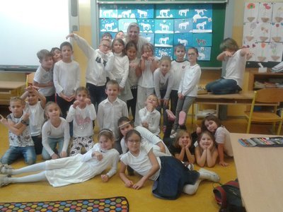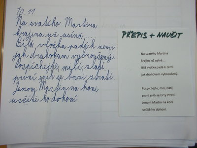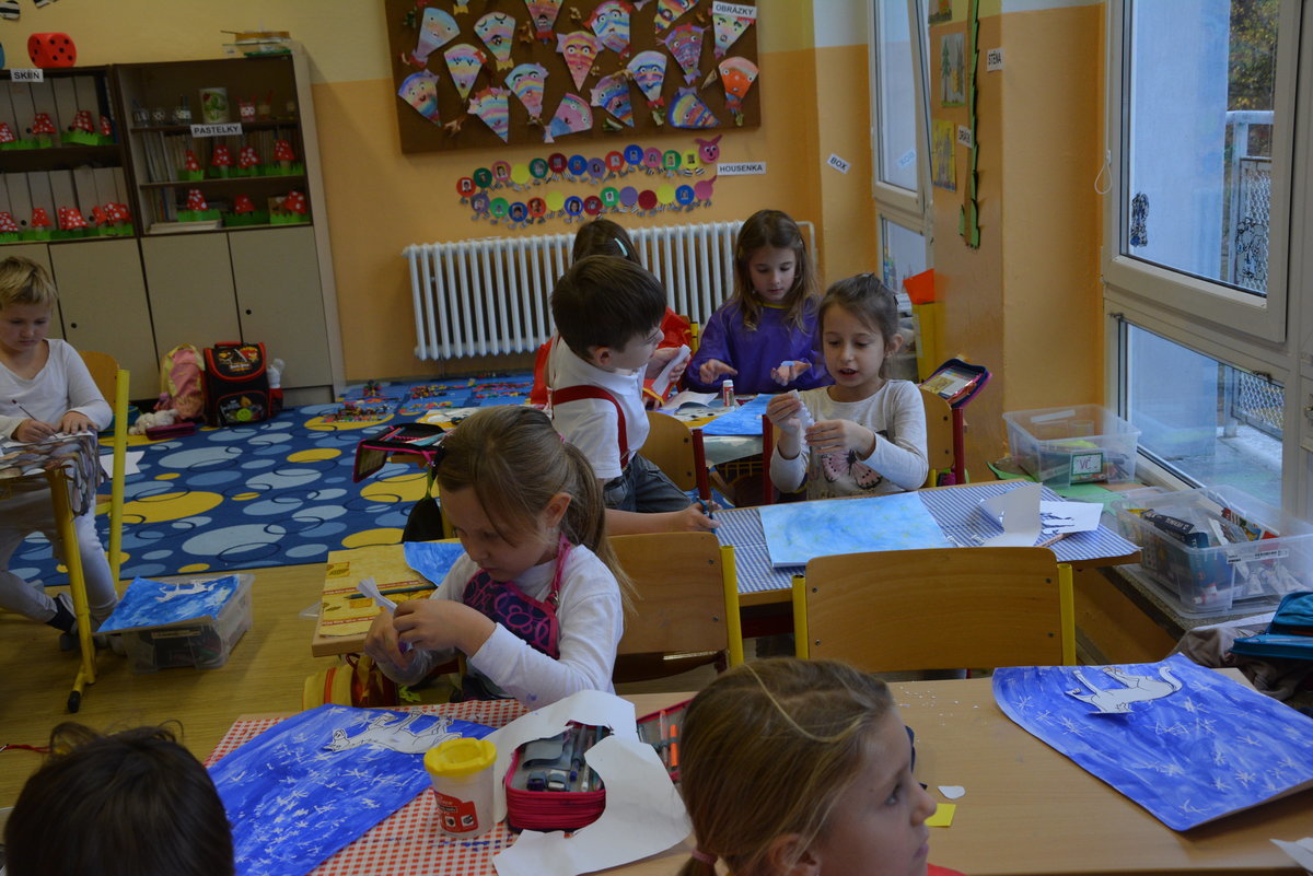 Celé páteční vyučování totiž bylo věnováno právě sv. Martinovi. Četly se pověsti, přicházelo se na kloub zajímavým pranostikám, řešily se rébusy, vyráběly se výrobky či malovaly obrázky. Dokonce do mnohých tříd přišly, v rámci čtenářské gramotnosti, číst babičky žáků.