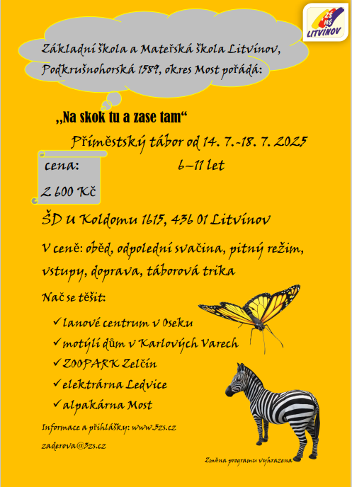 Už teď se těšíme na další ročník našeho příměstského tábora, který ponese název "Pět dní v oblacích". Tento ročník slibuje být stejně zábavný a poučný jako ty předchozí. Připravujeme pro děti spoustu zajímavých aktivit, her a výletů, které jim zpříjemní jejich pobyt u nás.