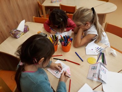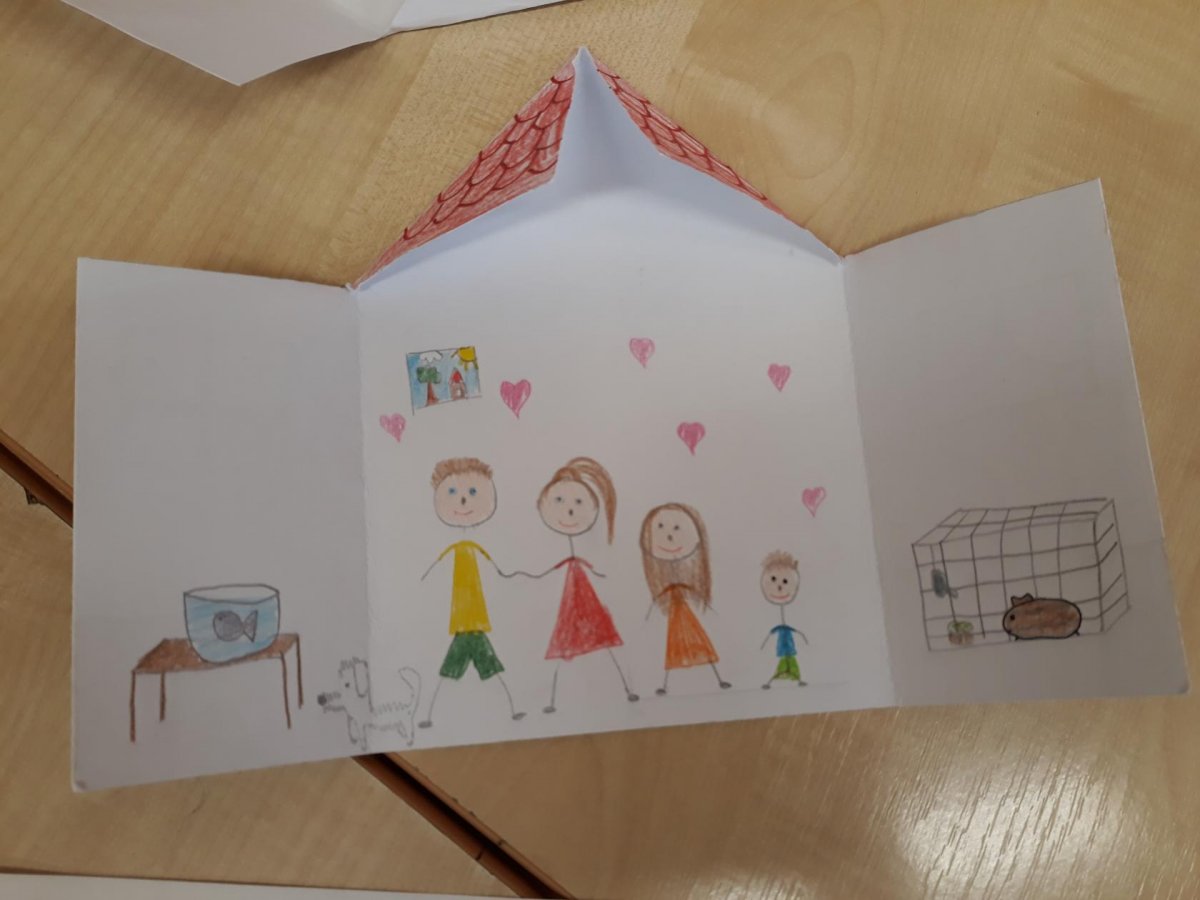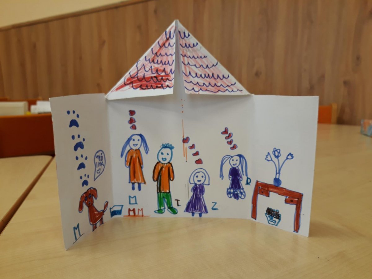Dnes jsme si s dětmi vyprávěli o své rodině a nakonec jsme si ji zkusili i nakreslit ve svém domečku.