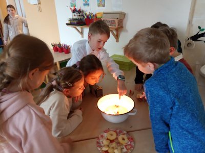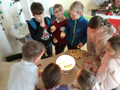 Pouštěli jsme lodičky z ořechových skořápek, poslechli jsme si vánoční koledy. Hvězdičky v rozkrojených jablíčkách nám ukázaly, že budeme zdraví celý příští rok. Nezapomněli jsme ani na zvířátka, kterým jsme odnesli nadílku do lesa.