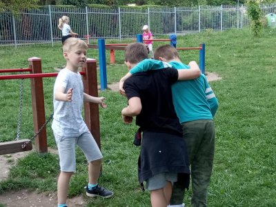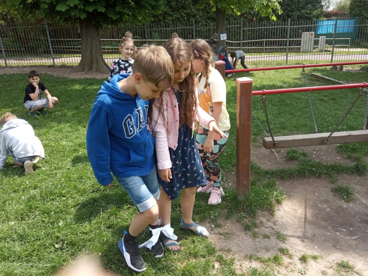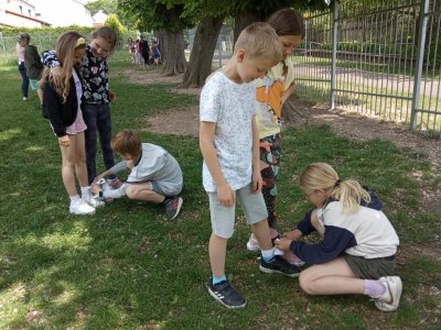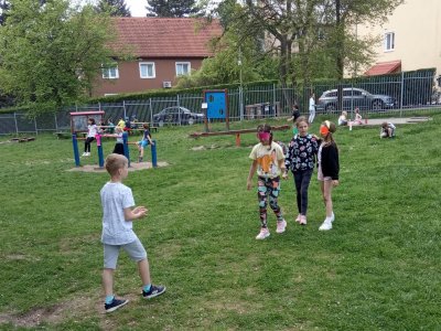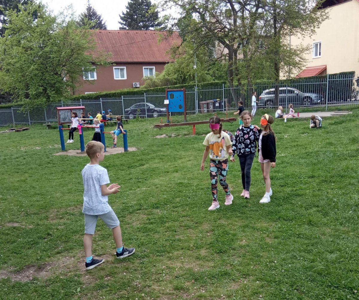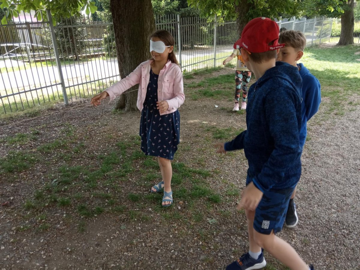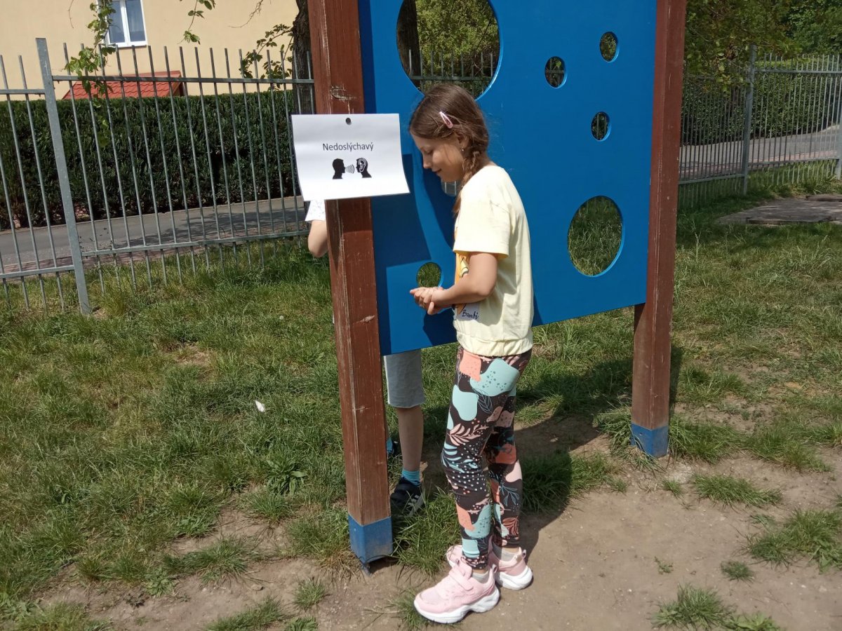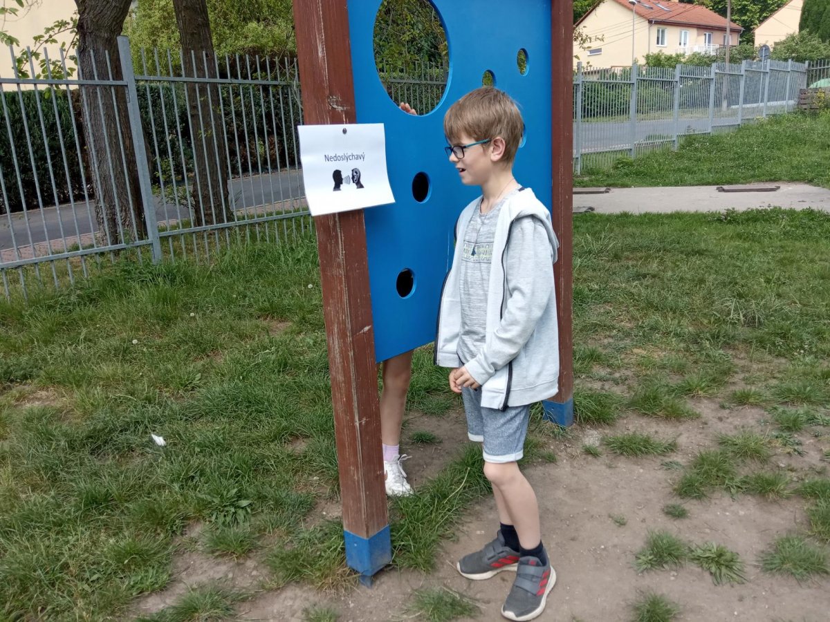 Dnes si děti mohly vyzkoušet, jak se žije lidem s nějakým postižením. Že to není jednoduché, zjistily v různých disciplínách - odezírání, chůze poslepu, věšení prádla jednou rukou, přenášení raněného ap.