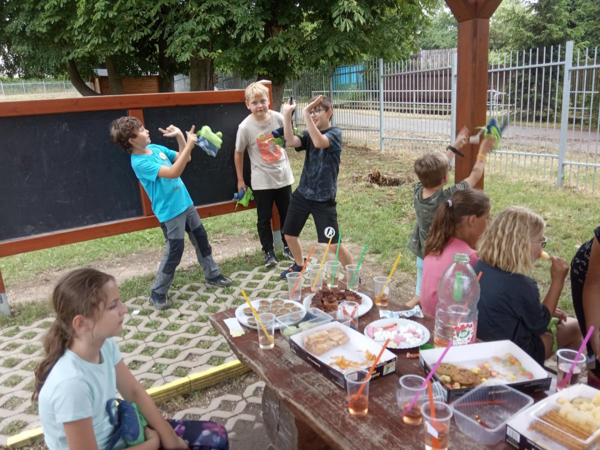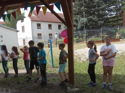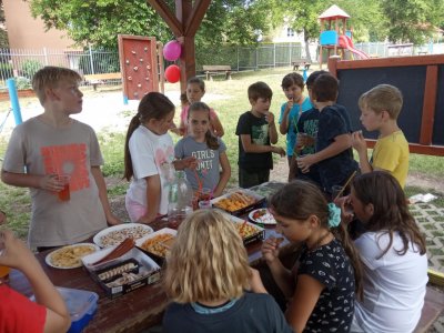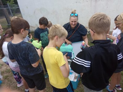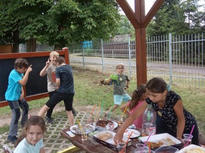 ...si děti opravdu užily. Mlsání, hudba, tanec,dárečky... Dorazila i p. Štěpánková ze společnosti Severočeská vodárenská s odměnami. Poděkování patří všem, kteří připravili pohoštění.