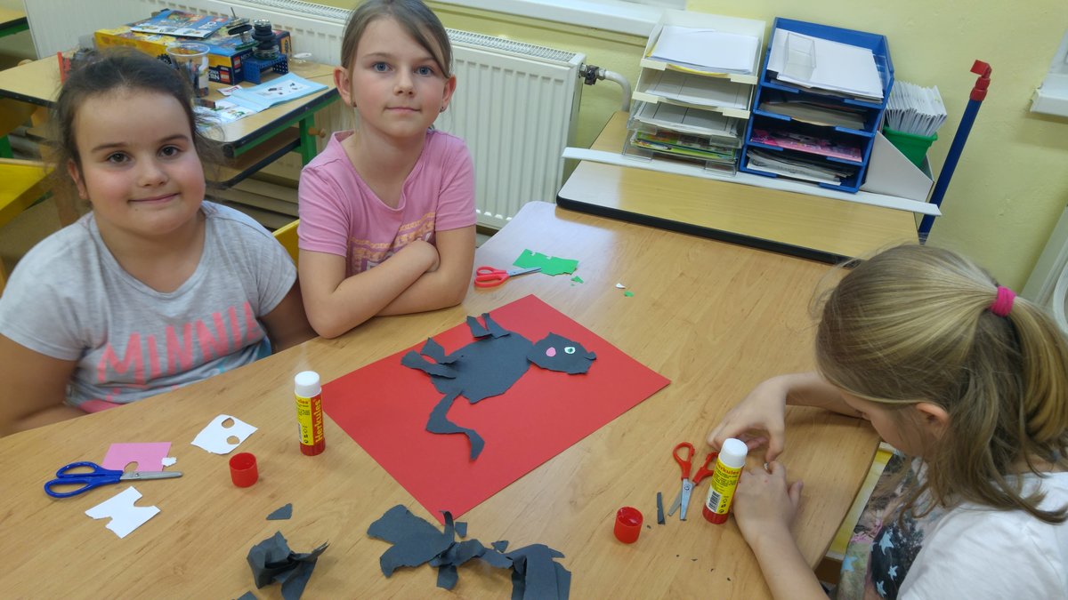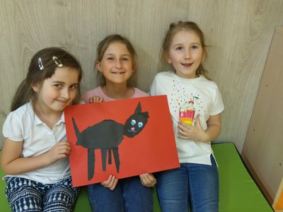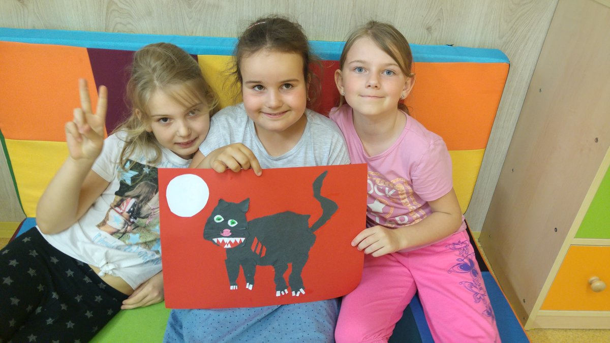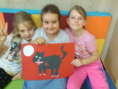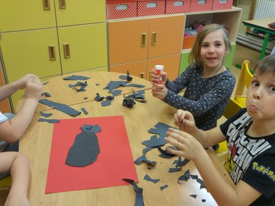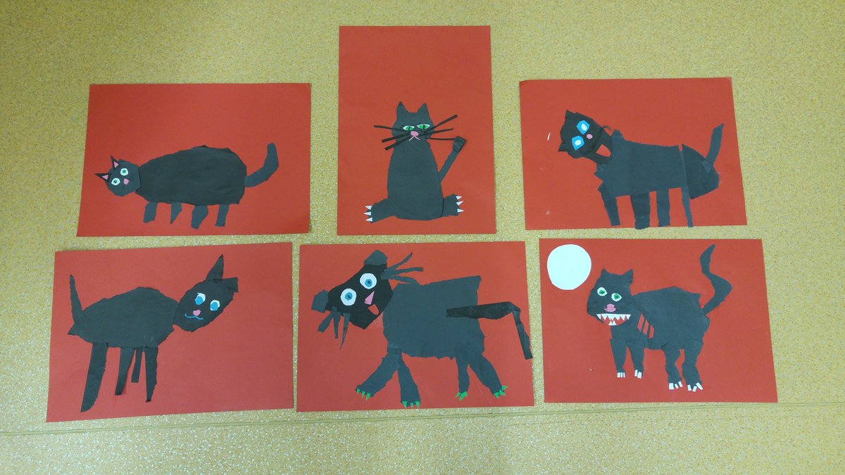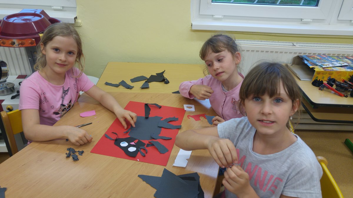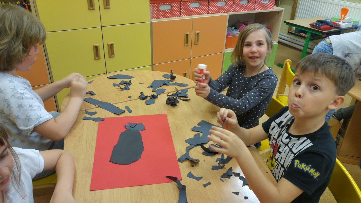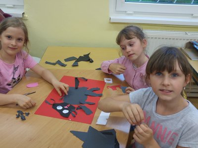 Trhání, skládání a lepení nám šlo skvěle a máme tu kočičí rodinku pro čarodějnice.