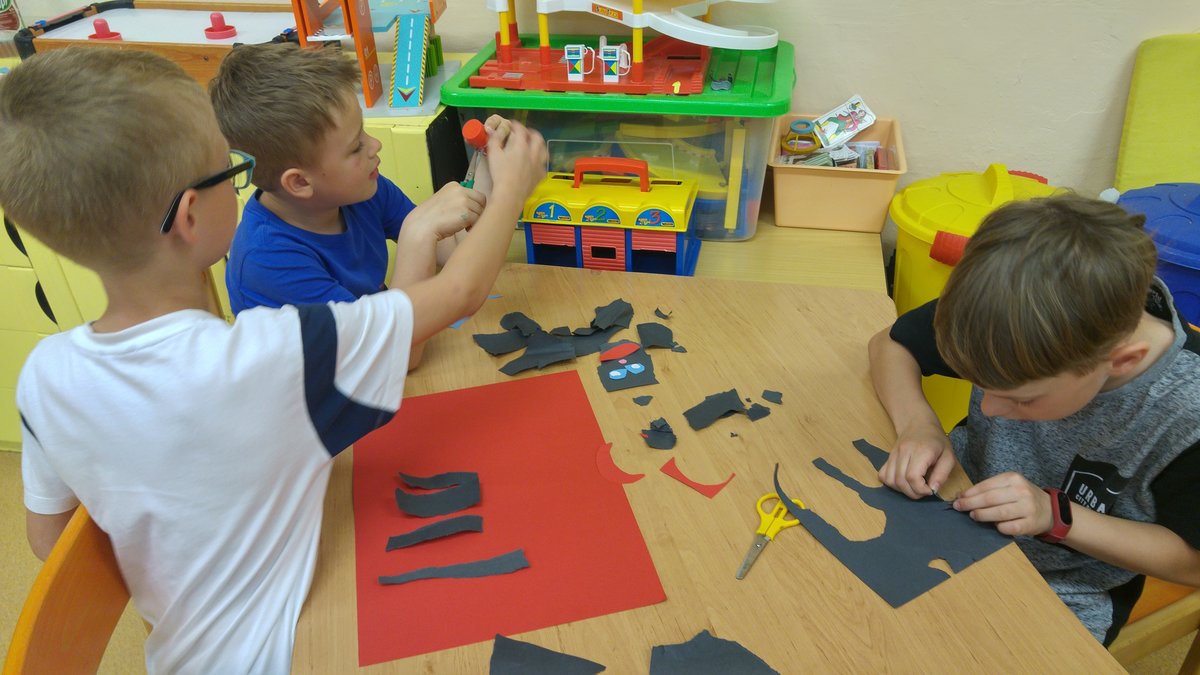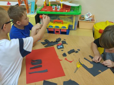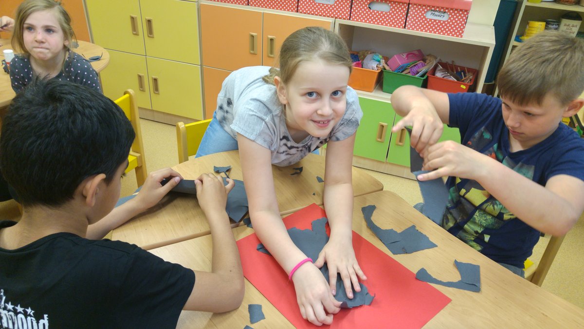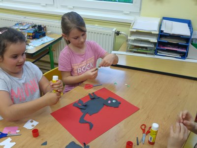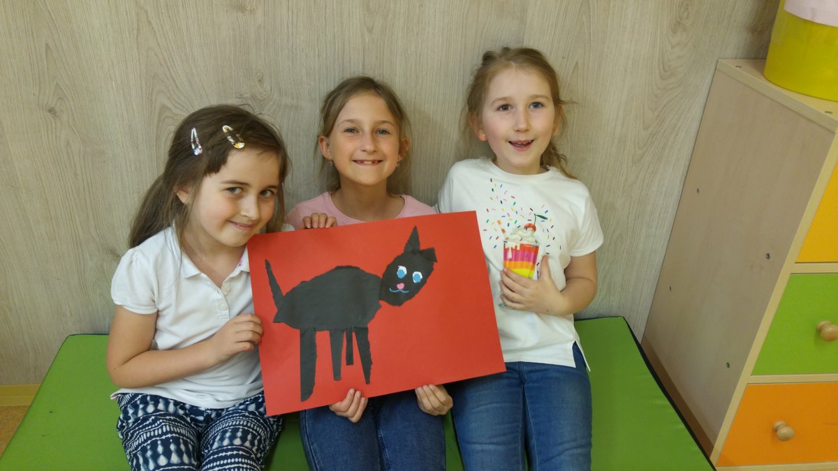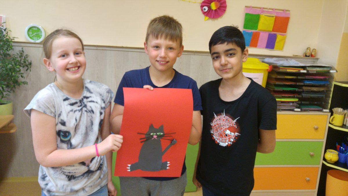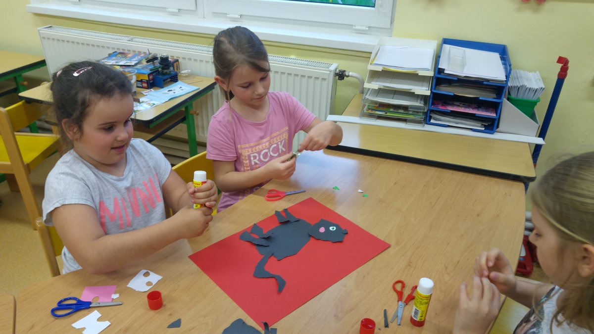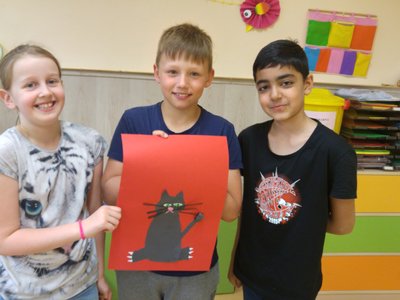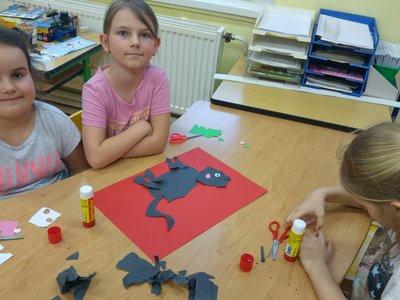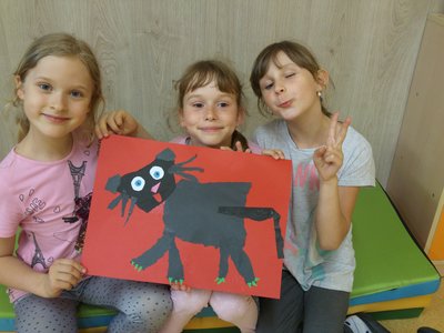 Trhání, skládání a lepení nám šlo skvěle a máme tu kočičí rodinku pro čarodějnice.