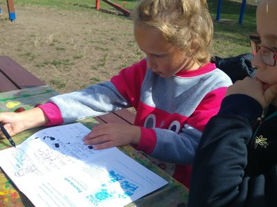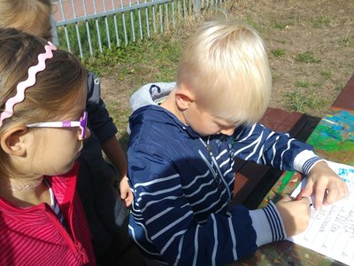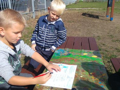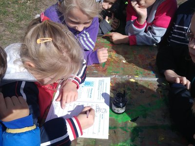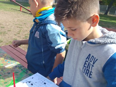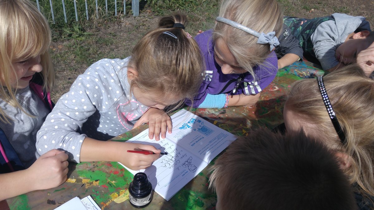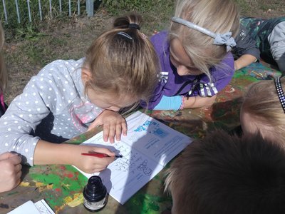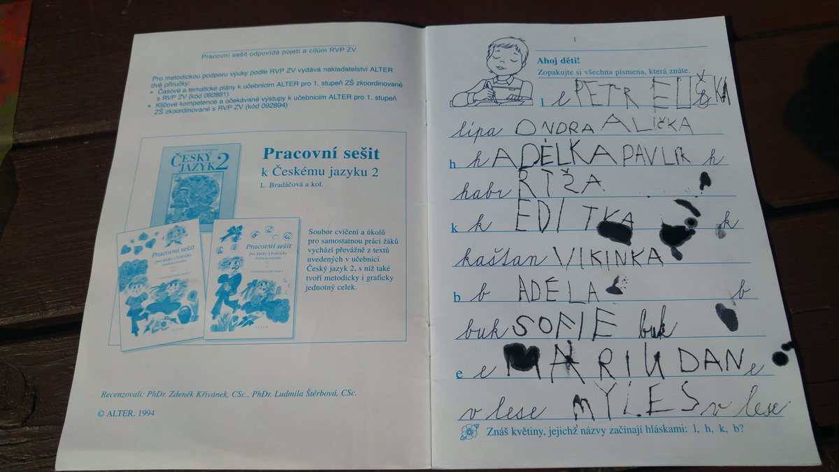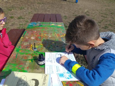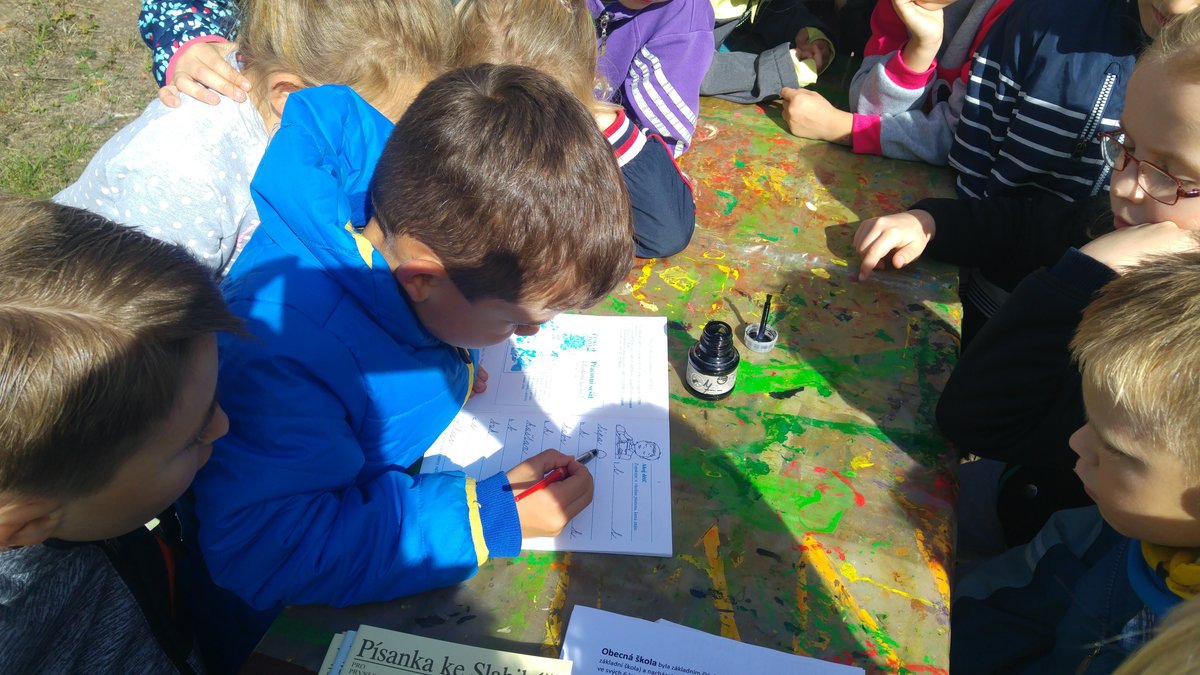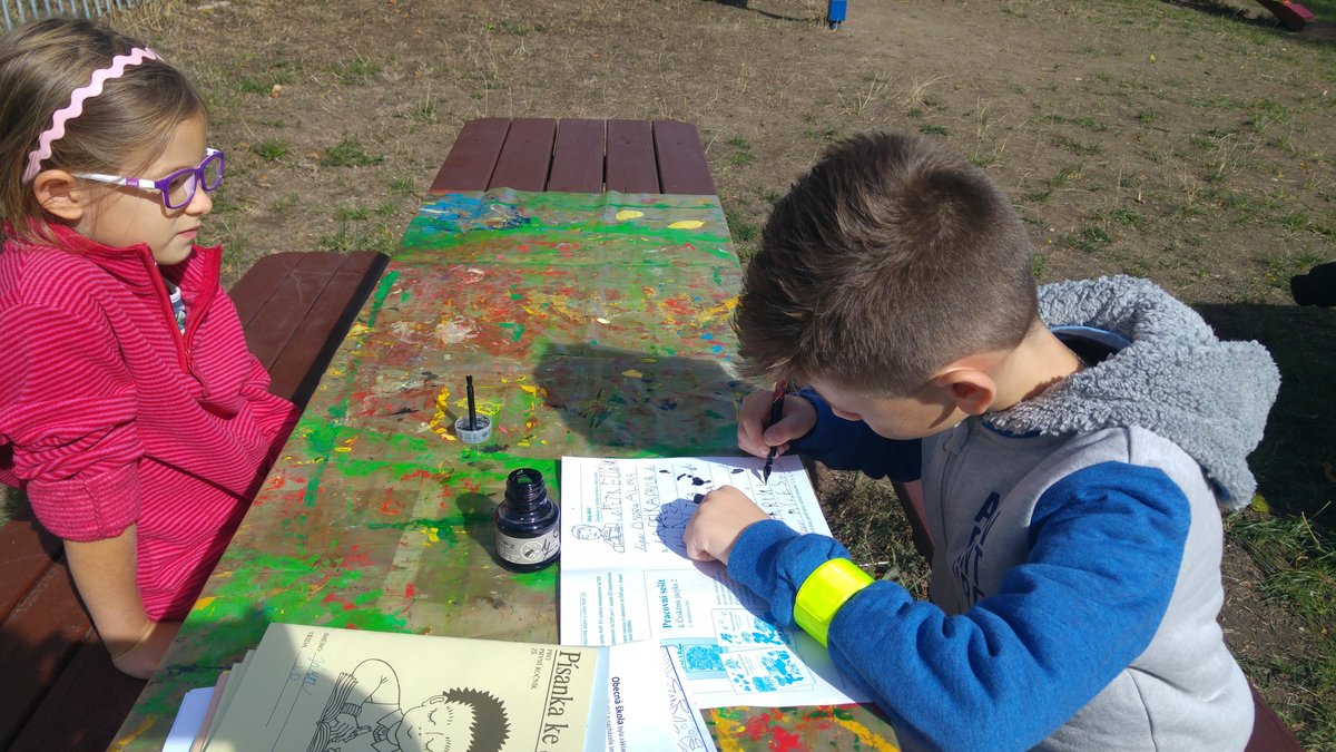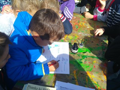 Dnes jsme si povídali o škole, kam chodili babičky a dědečkové a vyzkoušeli jsme si psaní perem. Stejně jako ve staré škole, tak i nám se podařilo ozdobit písanku kaňkami a umazat si ruce.